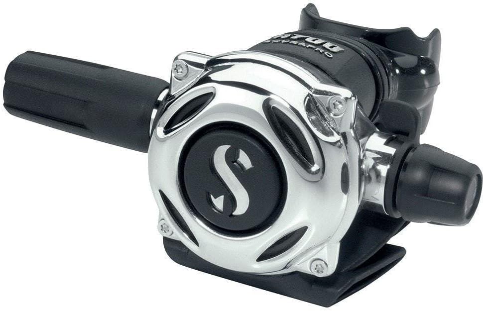 - Die erste Stufe mit luftbalanciertem Kolben in einem verchromten Gehäuse sorgt für einen konstanten und mühelosen Luftstrom unabhängig von Tiefe, Flaschendruck oder Atemrate.