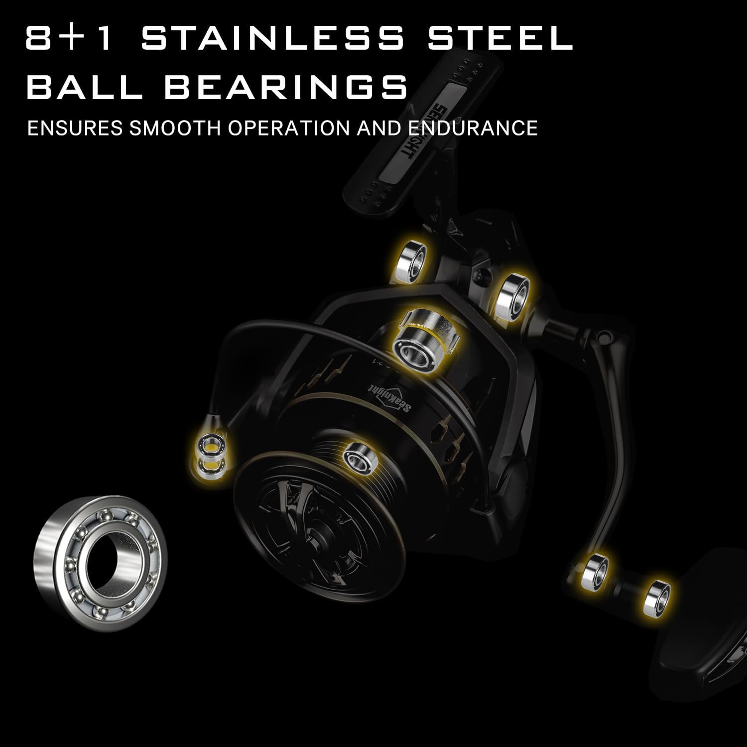 - 8 rostfreie Kugellager + 1 rostfreies Kugellager mit Rücklaufsperre sorgen für einen reibungslosen Betrieb.