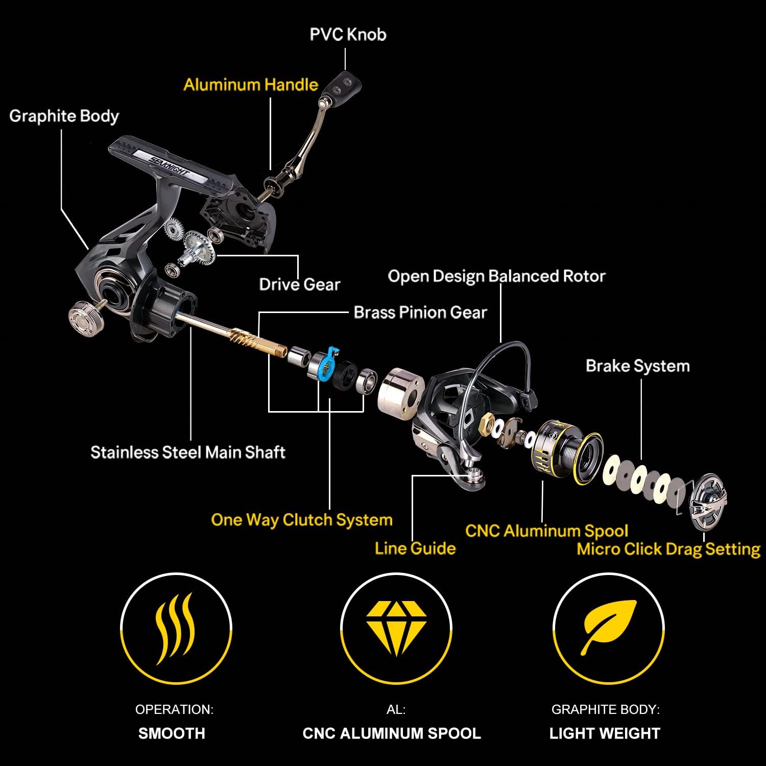• Aluminium-CNC-Hohlspule, bietet Ihnen eine verdammt solide und leichte Spule, hochfester Graphitkörper macht die Rolle leicht, aber stark.