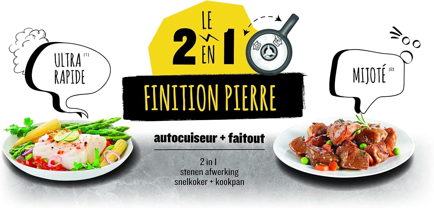 • DER ERSTE 2-in-1-Kochtopf: kompakter Schnellkochtopf (5 l) für bis zu 2 mal schnelleres Dampfgaren und Kochtopf für schmackhafte Schmorgerichte