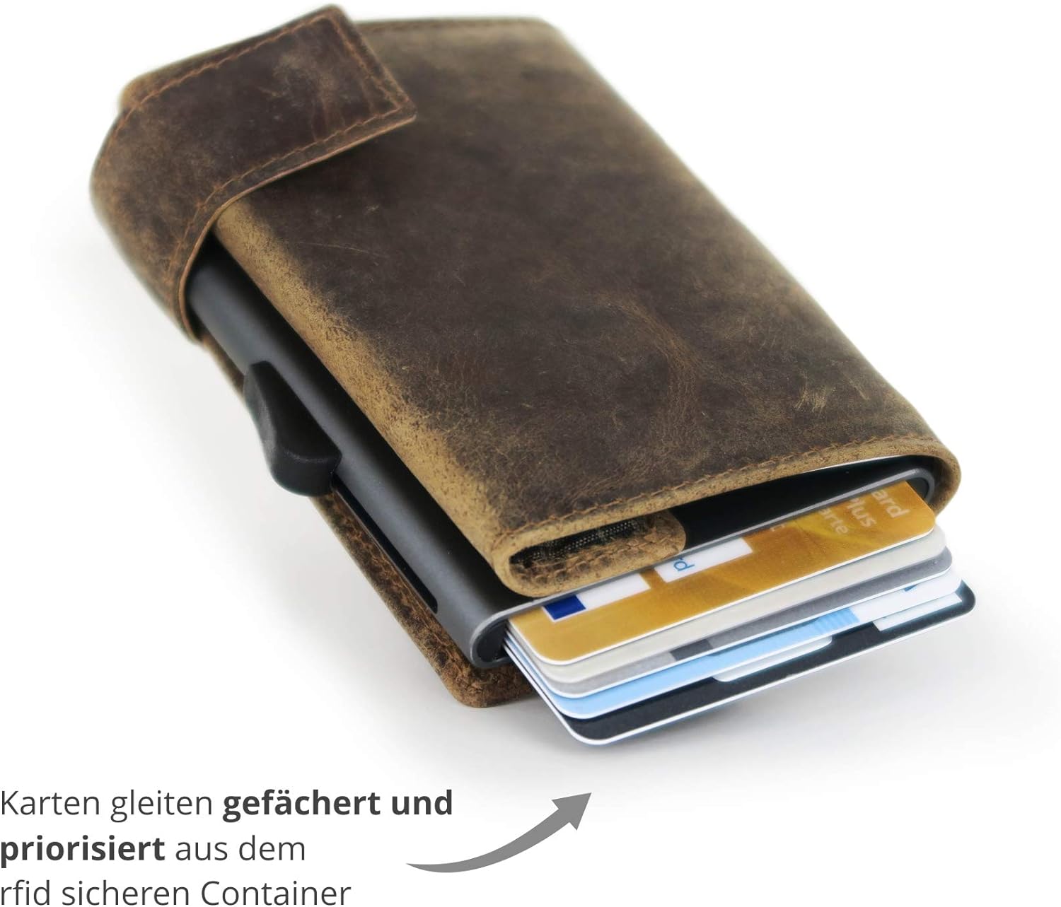 • Das Kreditkartenetui mit Geldbörse verfügt über seperates Münz- und Scheinfach