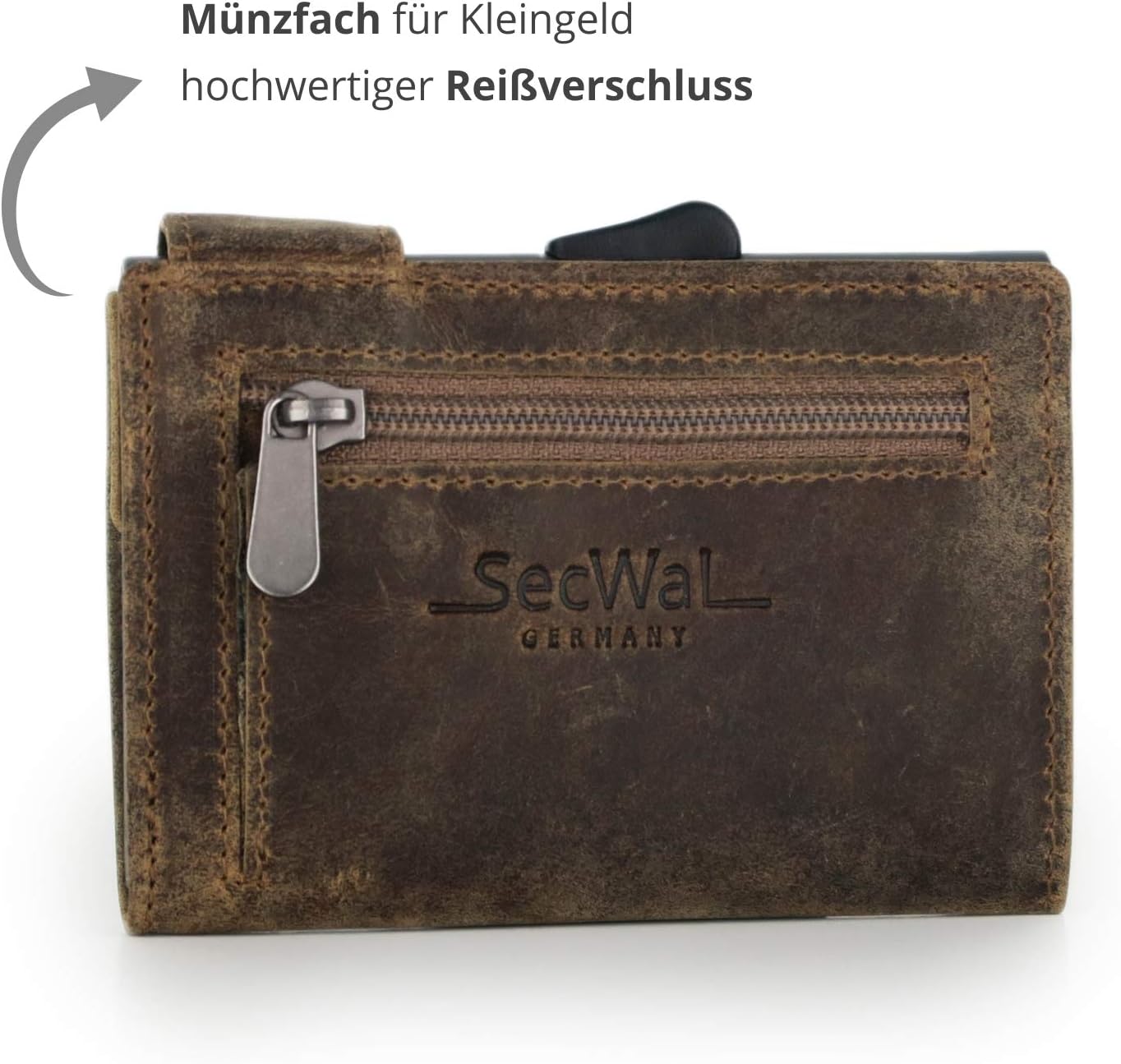SecWal Kartenetui mit Münzfach Reissverschluss (Braun Hunter), Braun Hunter