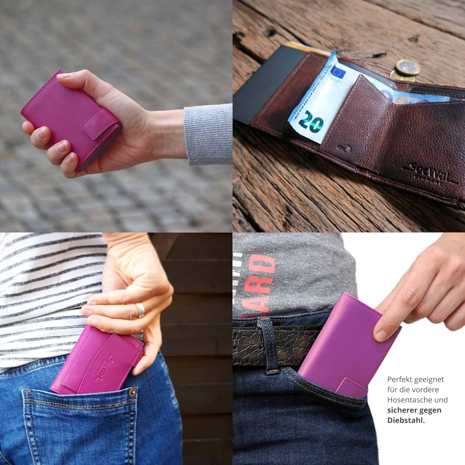 - Zusätzlich hat das Echtleder Portmonee noch 2 Steckfächer für bis zu 4 Karten