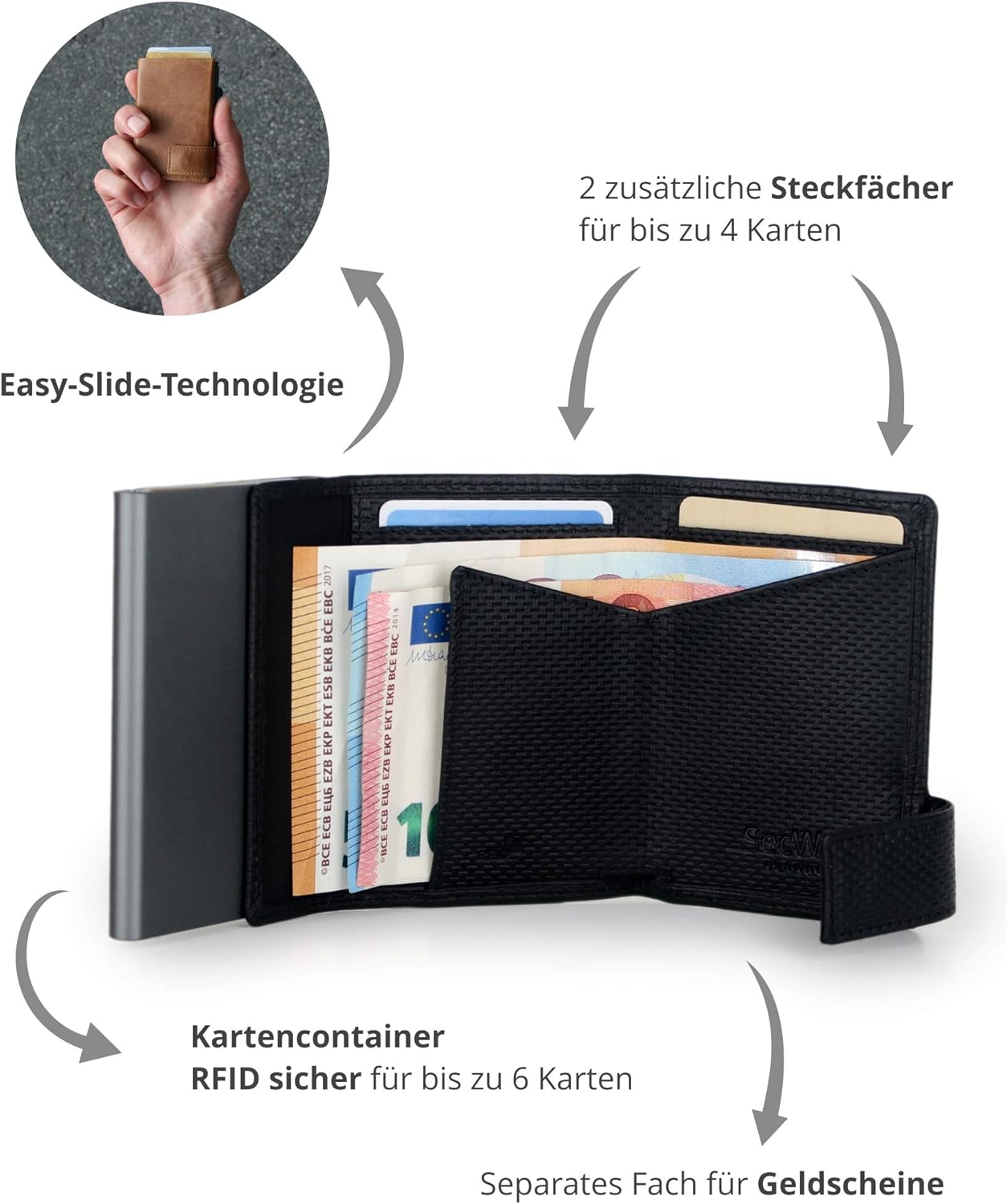 - Mini-Wallet mit 100% sicherem RIFD Aluminium-Container für bis zu 6 Kreditkarten