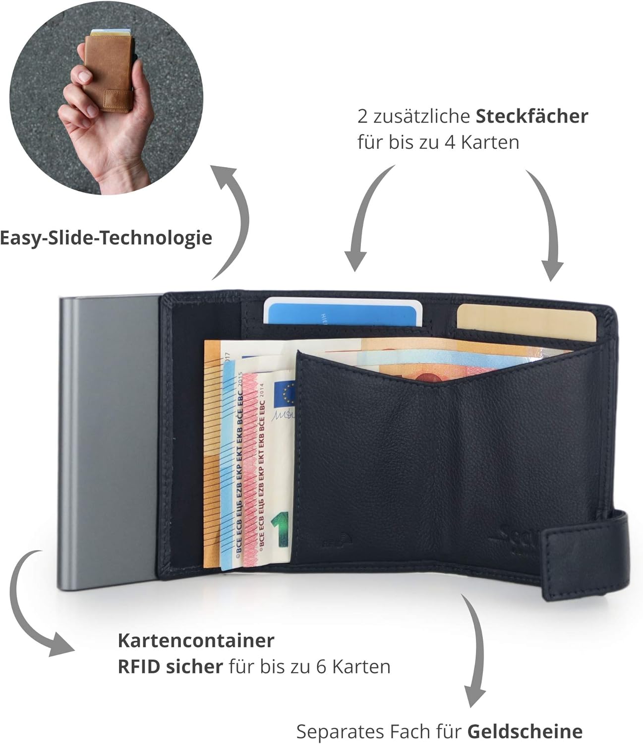 - Mini-Wallet mit 100% sicherem RIFD Aluminium-Container für bis zu 6 Kreditkarten