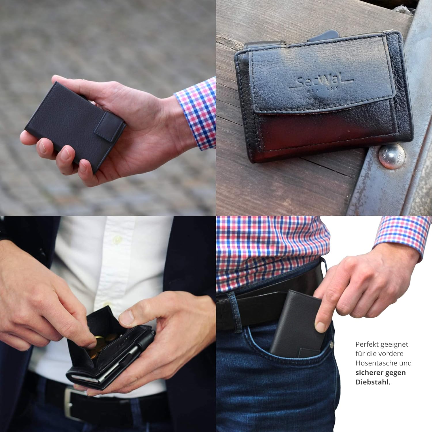 - Zusätzlich hat das Echtleder Portmonee noch 2 Steckfächer für bis zu 4 Karten