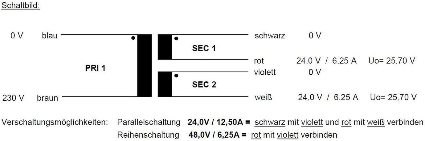 - FEATURES: Der Anschluss am Eingang des Ringkerntrafo ist Litzen mit 200mm. Der andere Anschluss am Eingang sind Volldrähte, welche 200mm lang sind. Der Sedlbauer Ringtransformator ist nicht vergossen.