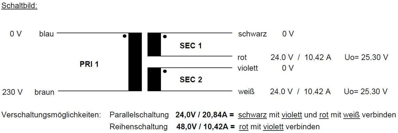 - LEISTUNG: Unsere Ringkerntransformatoren bieten Leistungen von 30 VA bis 2000 VA. Die Sekundärspannung beträgt 2x24V = 48V, der Ausgangsstrom: 2x10,42A, die Leistung 500VA sowie die Eingangsspannung: 230V (50/60Hz).