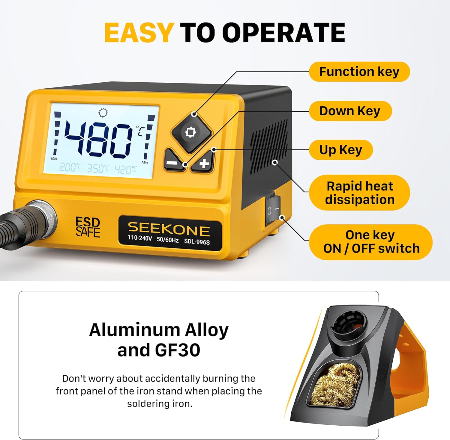 SEEKONE Lötstation 60W, Profi Lötkolben Einstellbare Temperatur 200℃-480℃ mit LCD Displayanzeige, Di