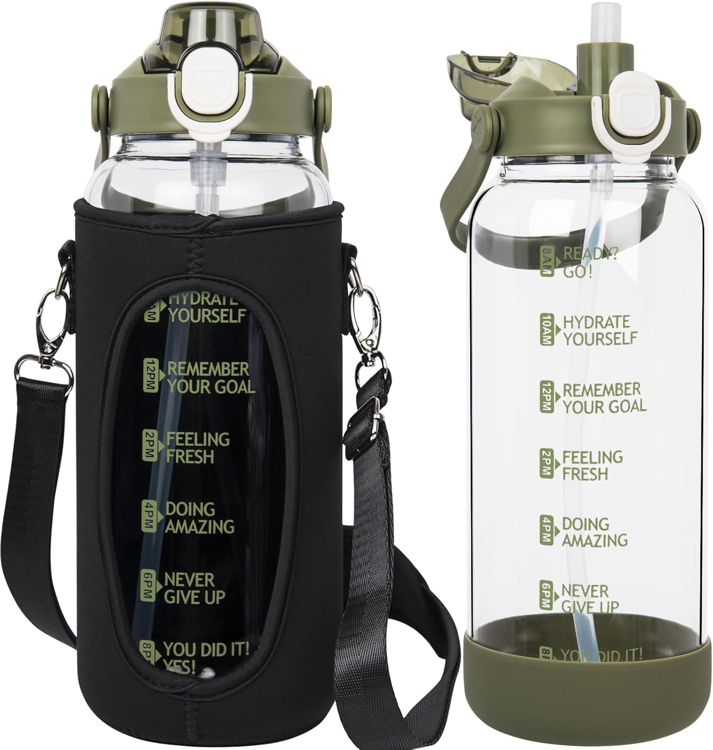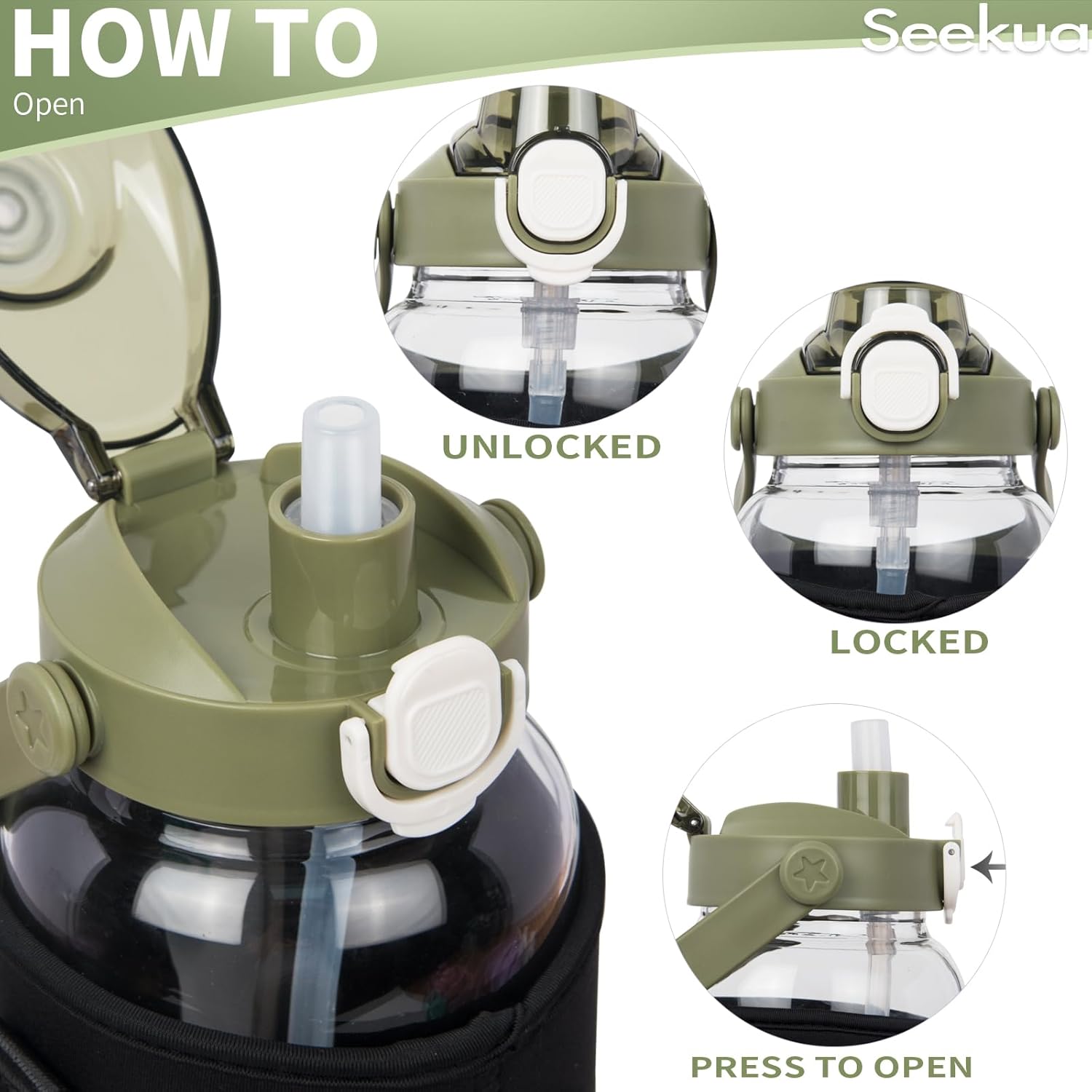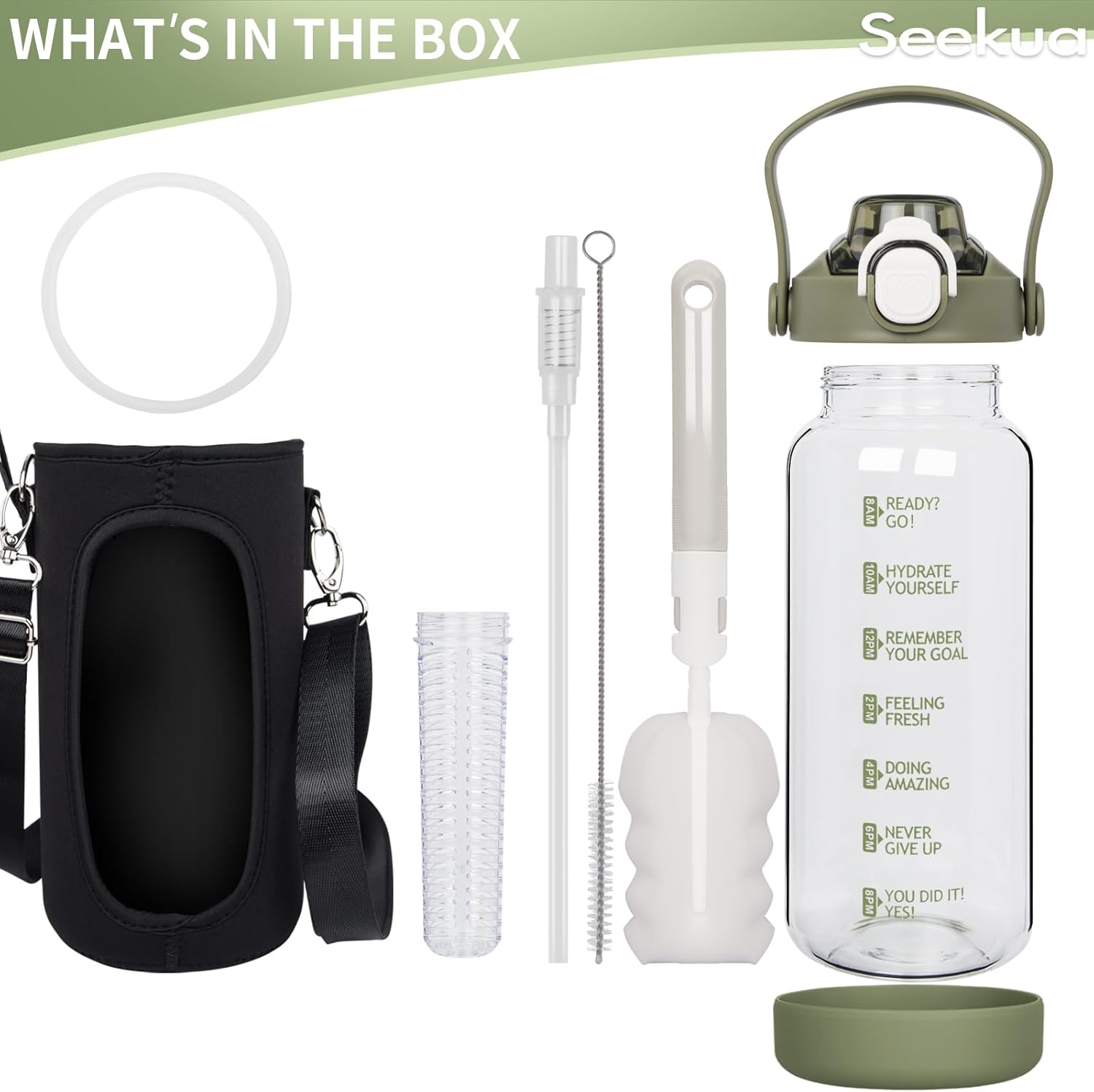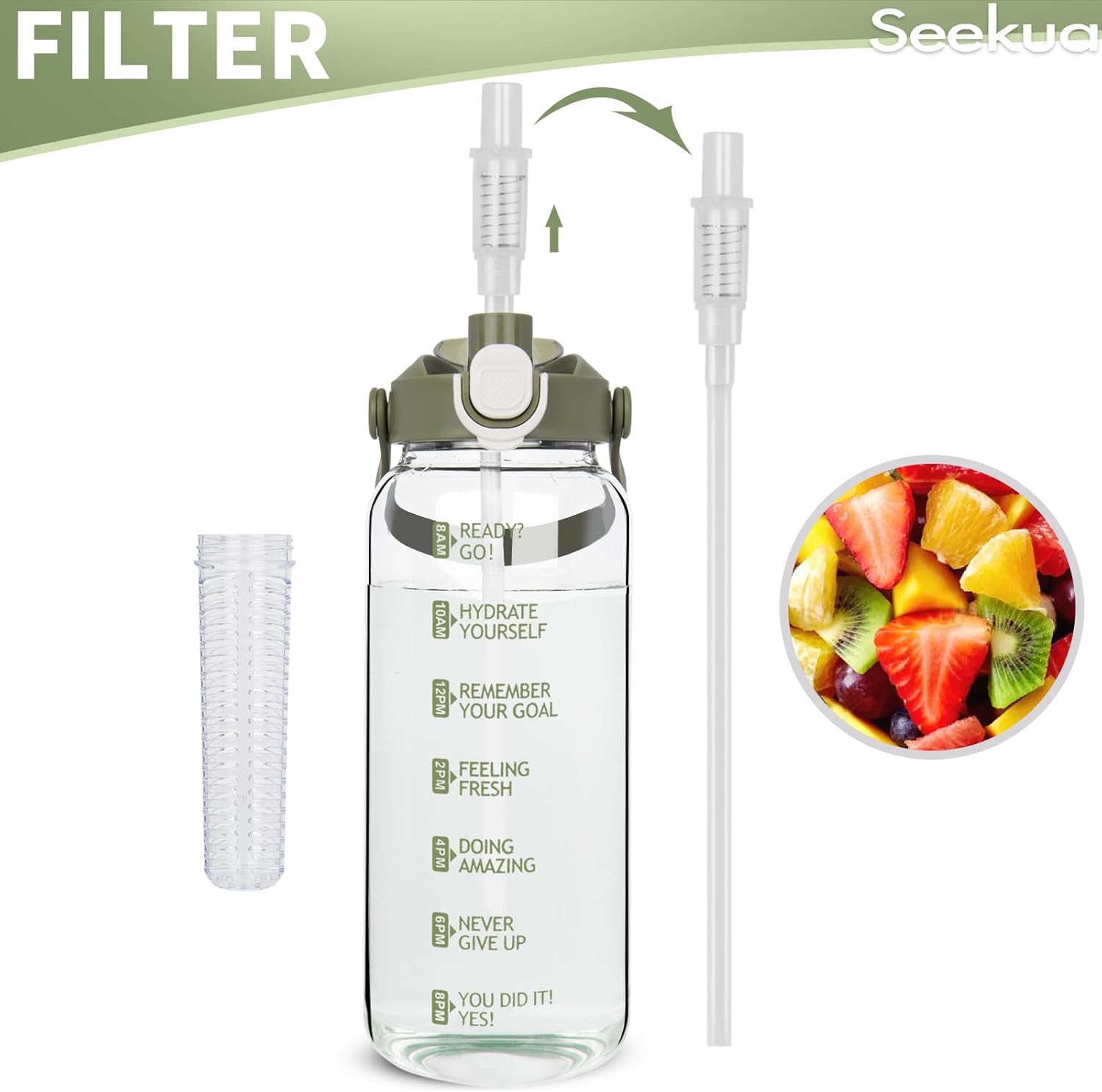 - 【Sicher Strohhalm】Seekua Wasserflasche Glas verfügt über motivierende Uhrzeit, die helfen, Ihre tägliche Wasseraufnahme zu verfolgen. Der abnehmbare Strohhalm ermöglicht es Ihnen, auslaufsicheres Trinken zu geniessen.