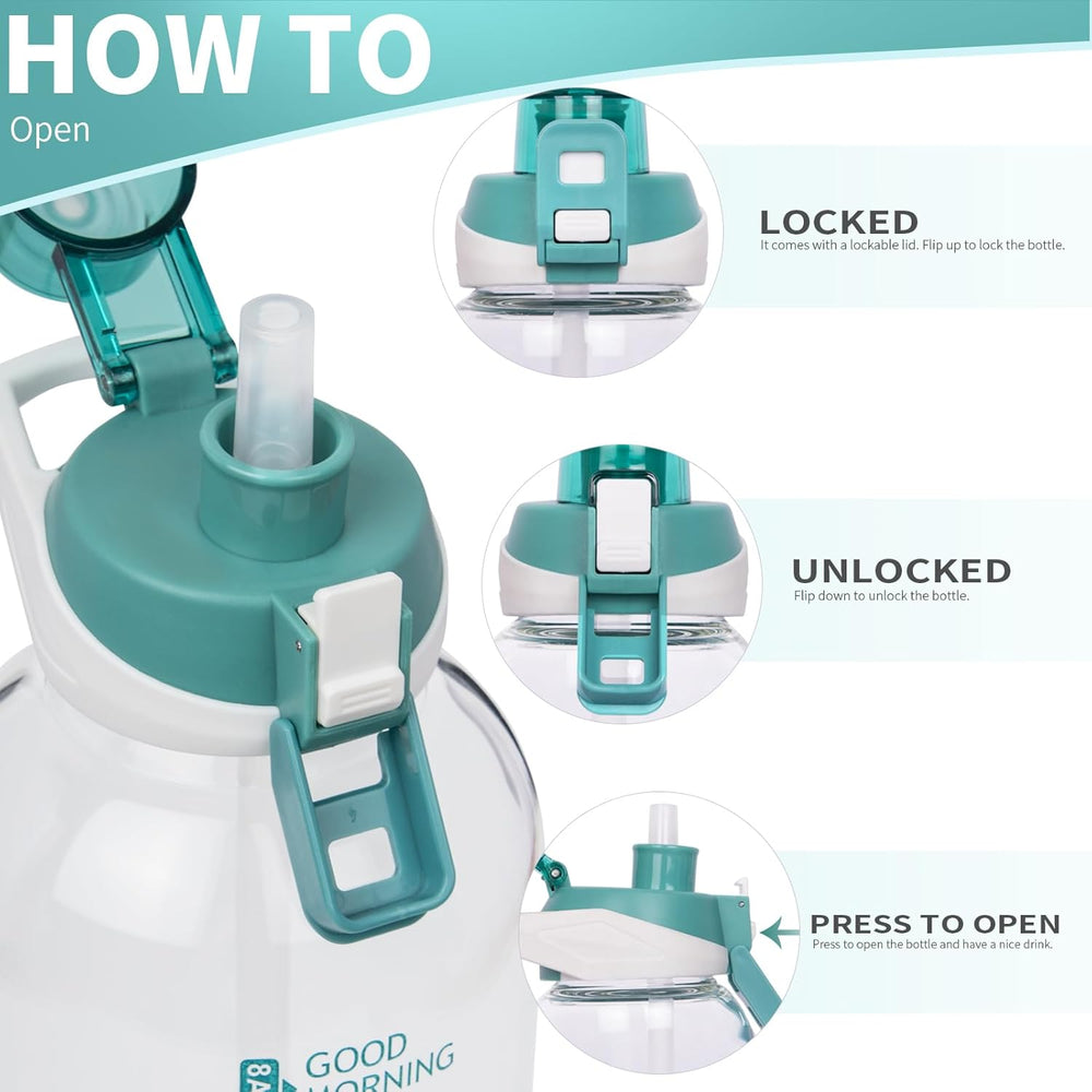 - 【KLAPPDECKEL & STROHHALM】- Lecksicherer Klappdeckel. Öffnen Sie die Wasserflasche Glas einfach mit einer Hand durch Anklicken des Buttons. Es gibt zwei Möglichkeiten zu trinken. Sie können entweder direkt vom Strohhalm schlürfen oder den