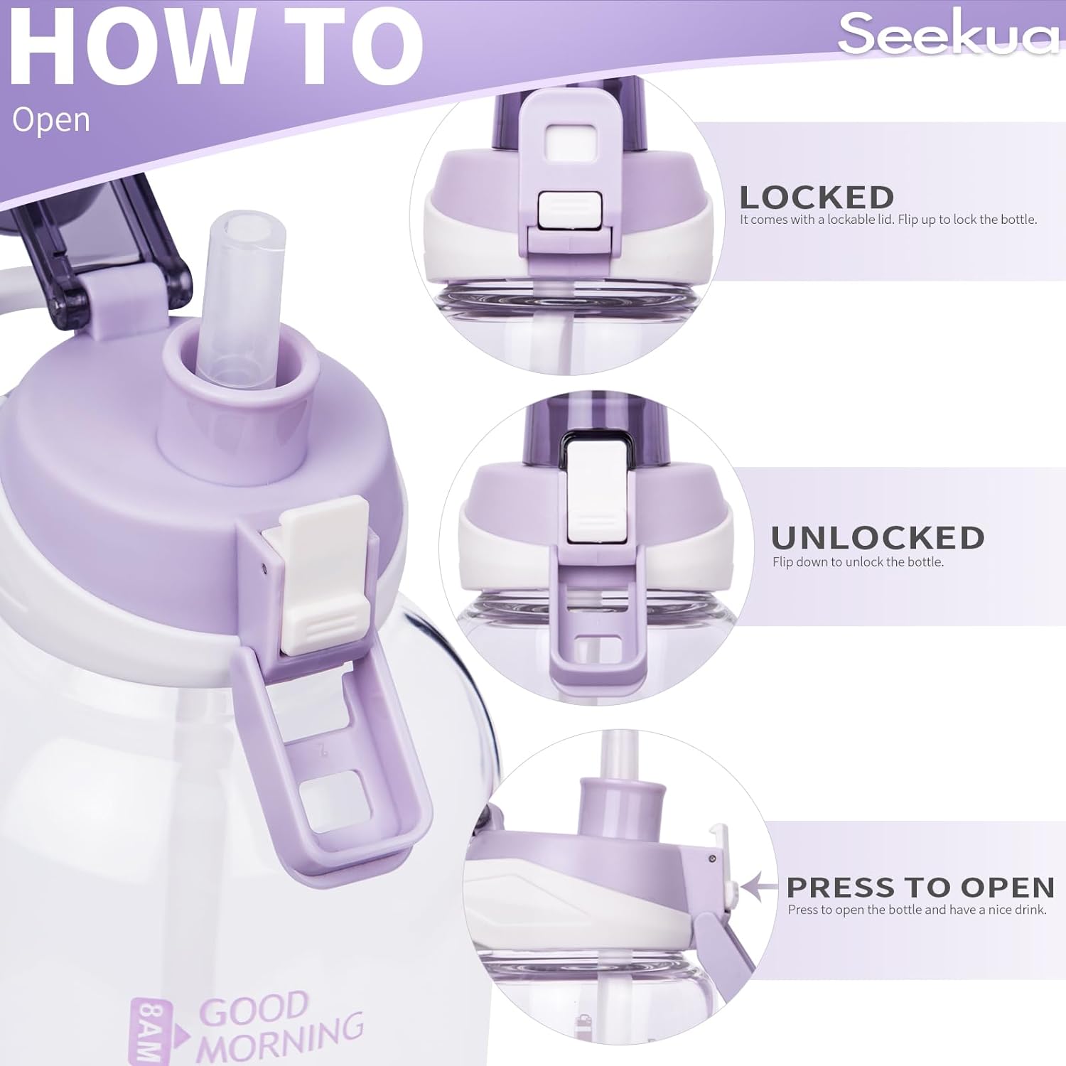 - 【KLAPPDECKEL & STROHHALM】- Lecksicherer Klappdeckel. Öffnen Sie die Wasserflasche Glas einfach mit einer Hand durch Anklicken des Buttons. Es gibt zwei Möglichkeiten zu trinken. Sie können entweder direkt vom Strohhalm schlürfen oder den