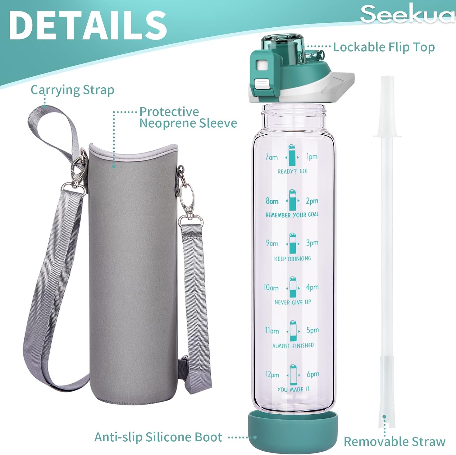 - 【MOTIVATION & UHRZEIT】-Zeitmarkierungen und motivierende Zitate auf den Flaschen, die Sie daran erinnern, hydriert zu bleiben und Ihre tägliche Wasseraufnahme zu steigern.
