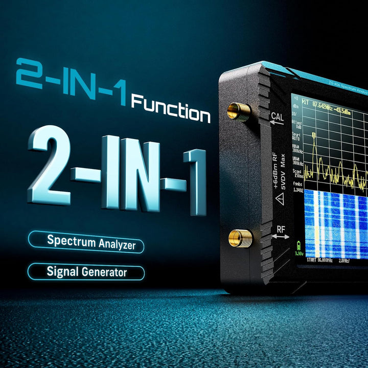- ✅【2 in 1 Multifunktions Frequenzanalysator und Signalgenerator】: Wenn er nicht als Spektrumanalysator verwendet wird, kann er als Signalgenerator verwendet werden, mit Sinuswellenausgang zwischen 0,1-800MHz oder Rechteckwellen- oder