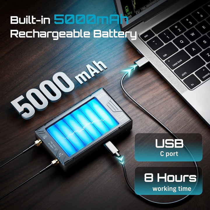 - ✅【Ultra lange Batterielebensdauer und 200Hz-850kHz RBW】: Die aktualisierte tinysa Analysator eingebaut 3000m-ah Akku, mit Typ-C-Ladekabel und LED-Ladeanzeige, kann es vollständig innerhalb von 3 Stunden aufgeladen werden. Die RBW ist so niedrig