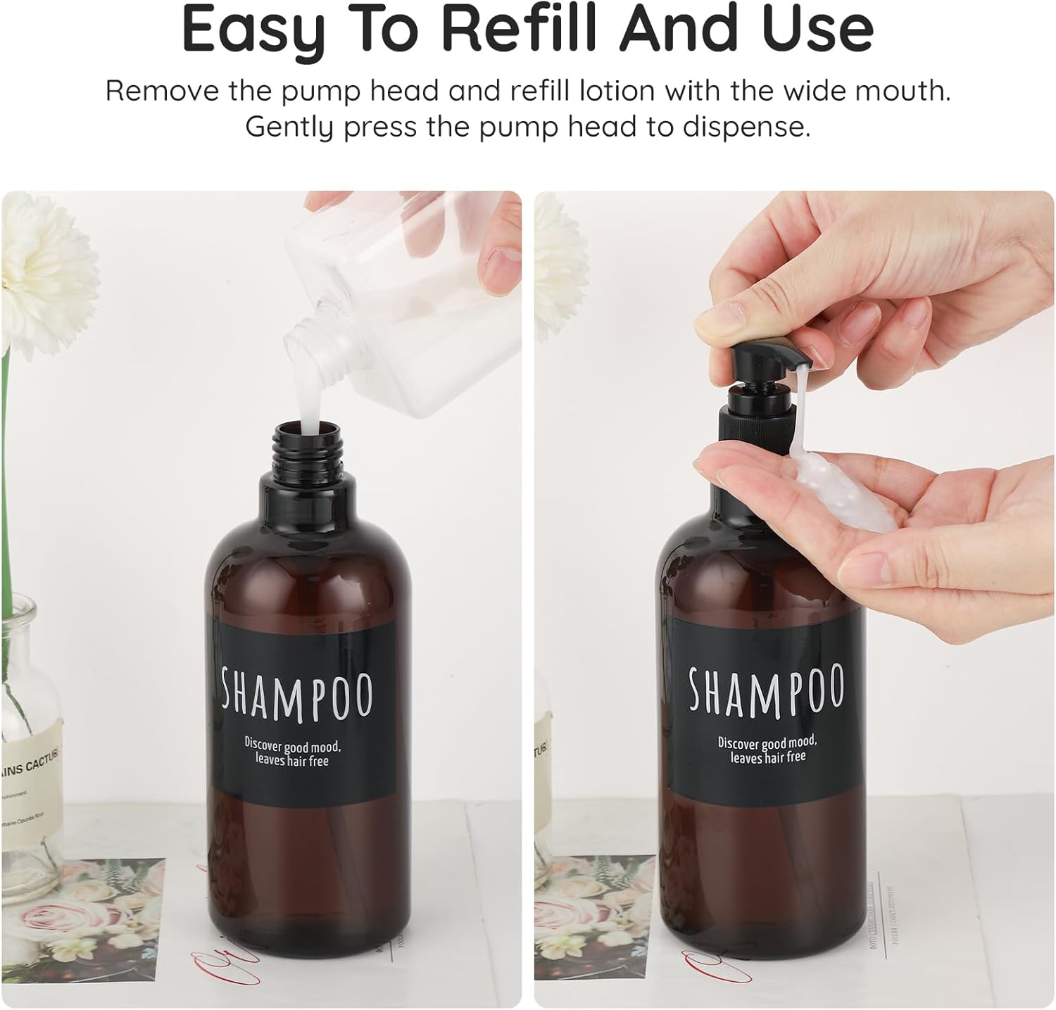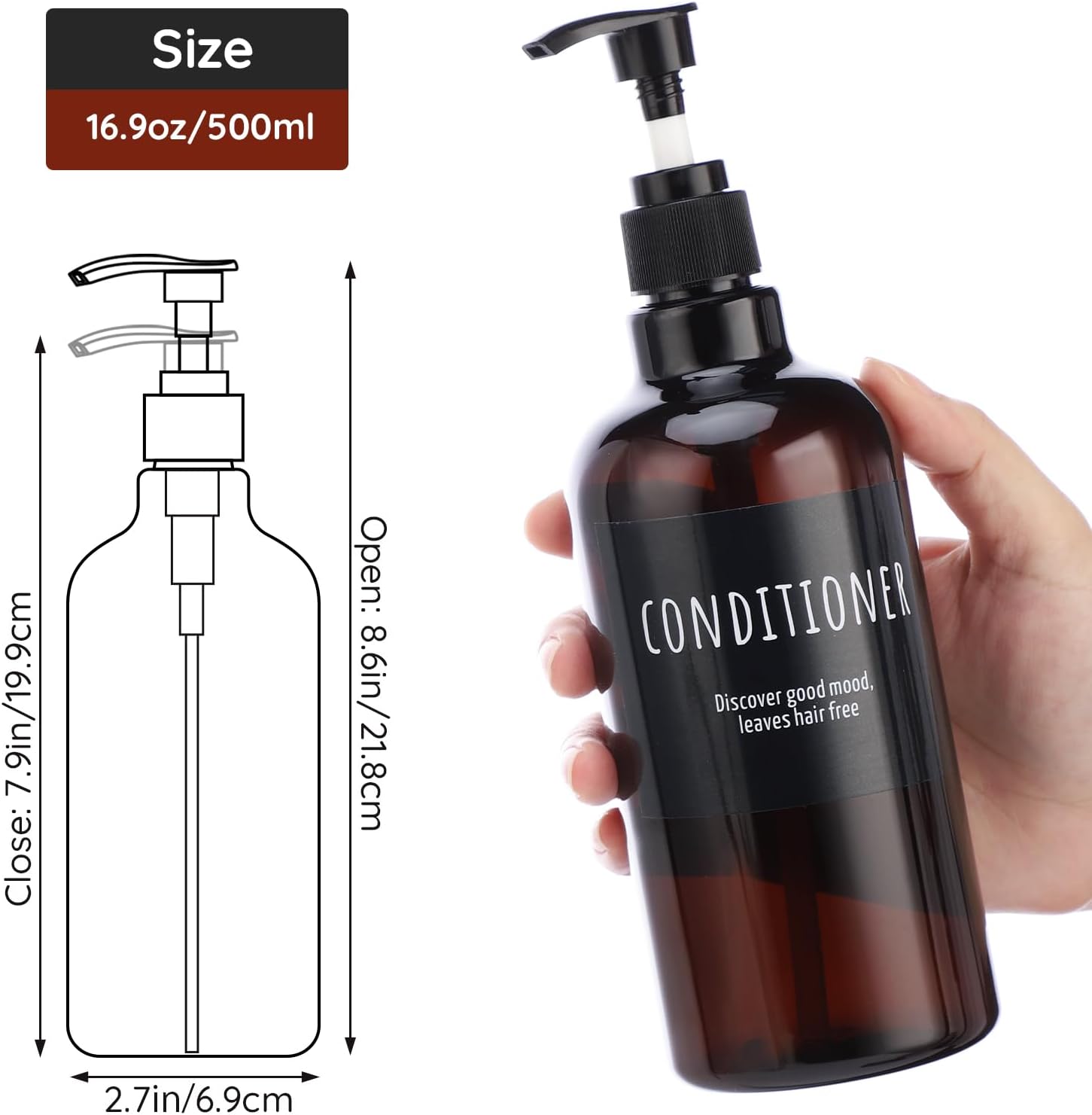 - 【Angemessene Kapazität】Jede Spenderflasche enthält eine grosse Kapazität von 16,9 Unzen, die die Grundbedürfnisse der ganzen Familie erfüllen kann. Wir helfen Ihnen, vorab ein Etikett mit "SHAMPOO, BODY SOAP, CONDITIONER“ auf der Flasche