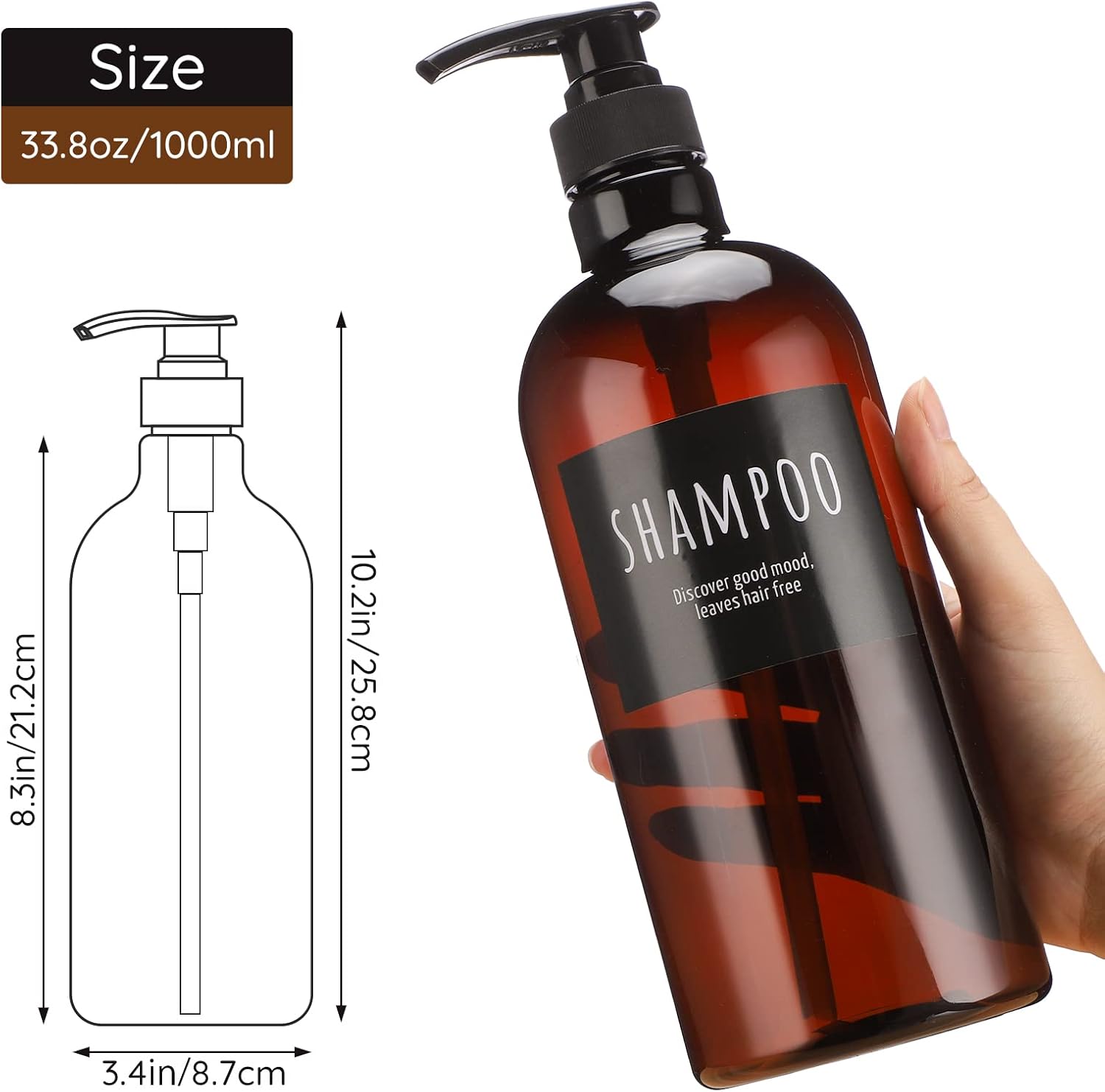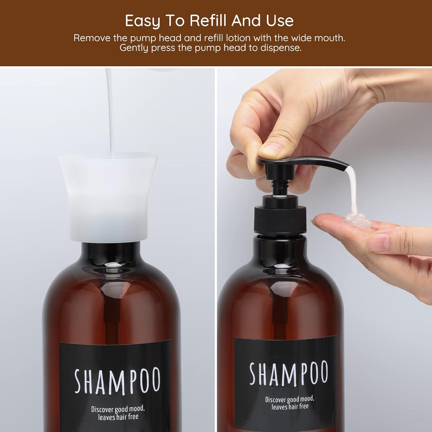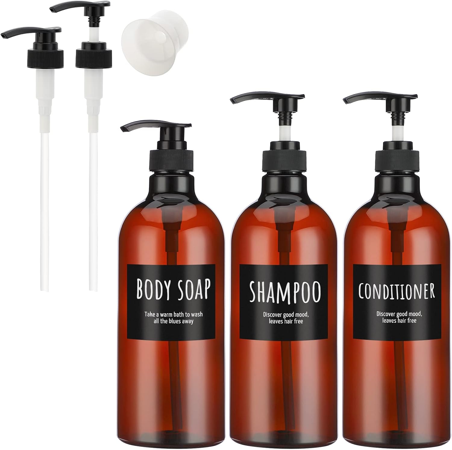 - 【Praktischer Anzug】Das Set enthält 3x Seifenspender, 2x Pumpenköpfe und 1x Trichter. Drei Flaschen sind mit "SHAMPOO, BODY SOAP, CONDITIONER" beschriftet, damit Sie die darin enthaltene Flüssigkeit besser unterscheiden können.