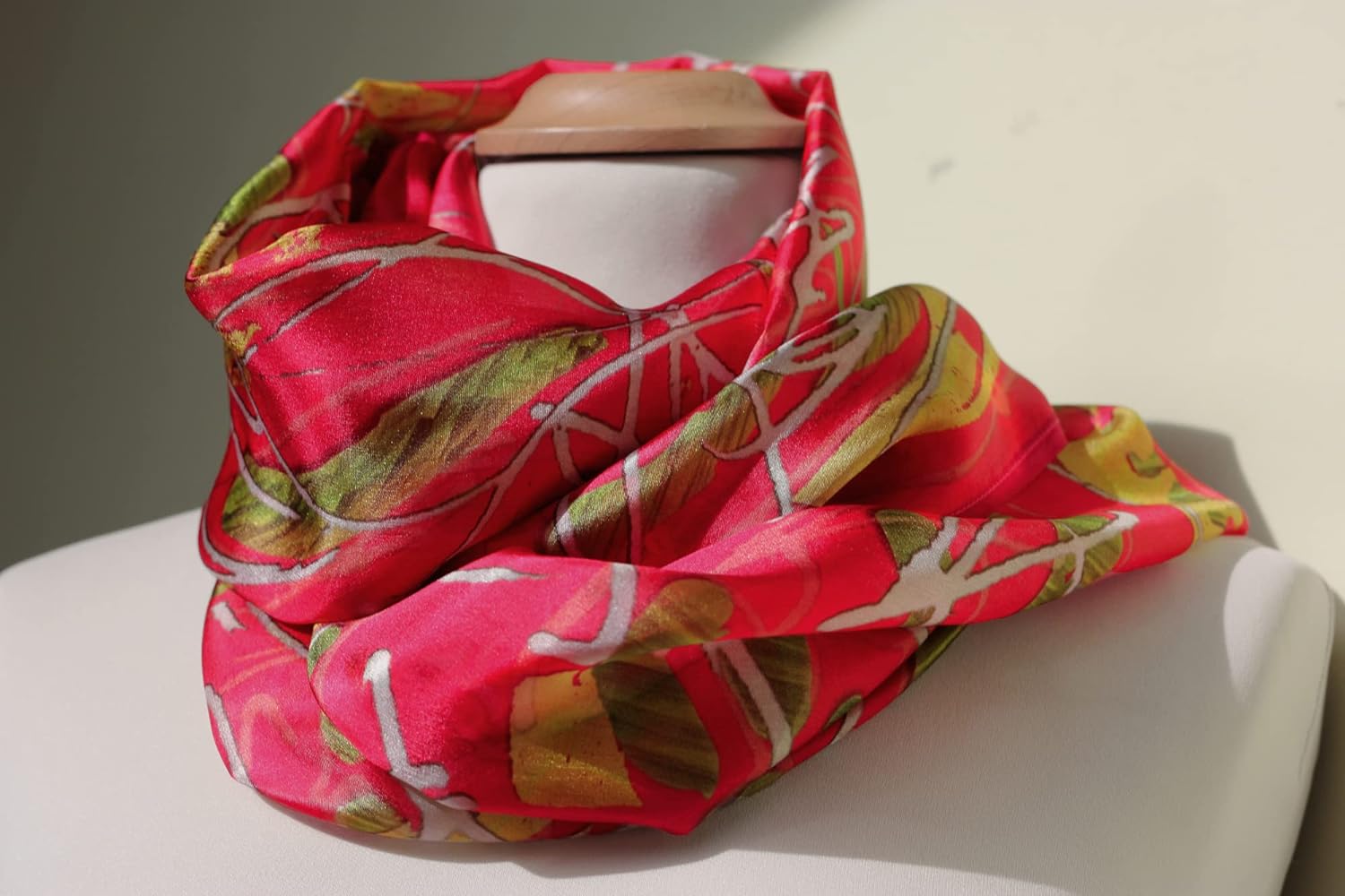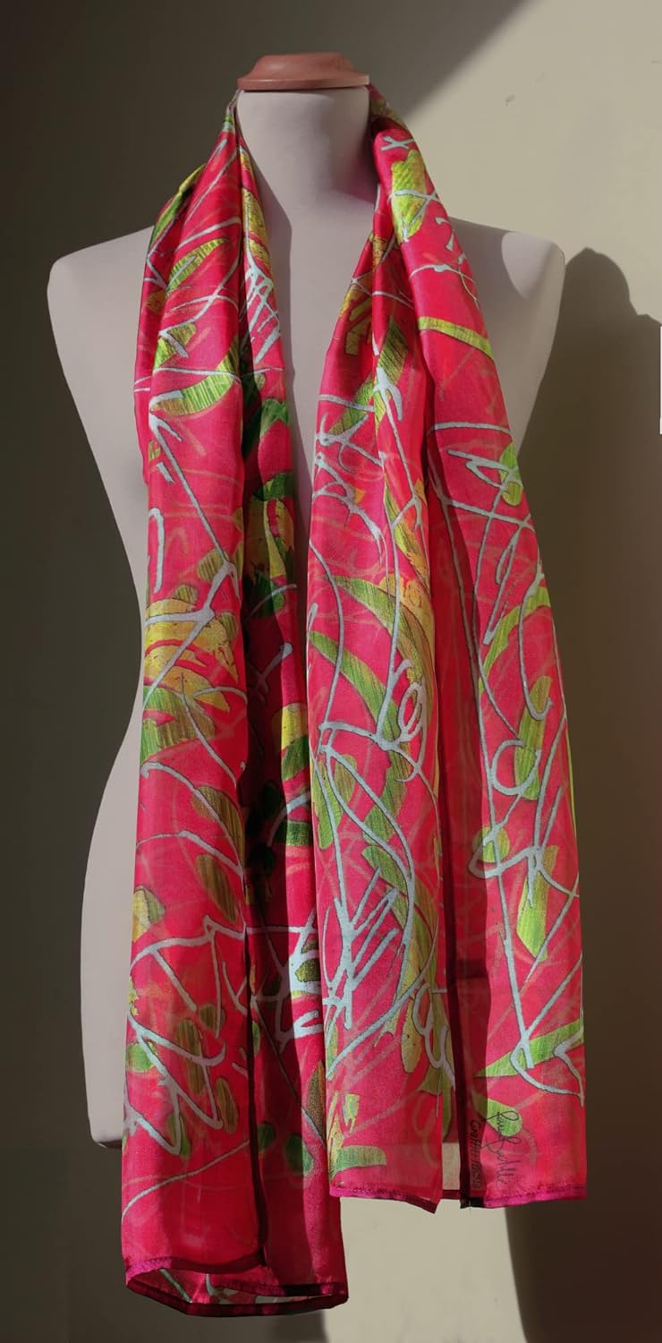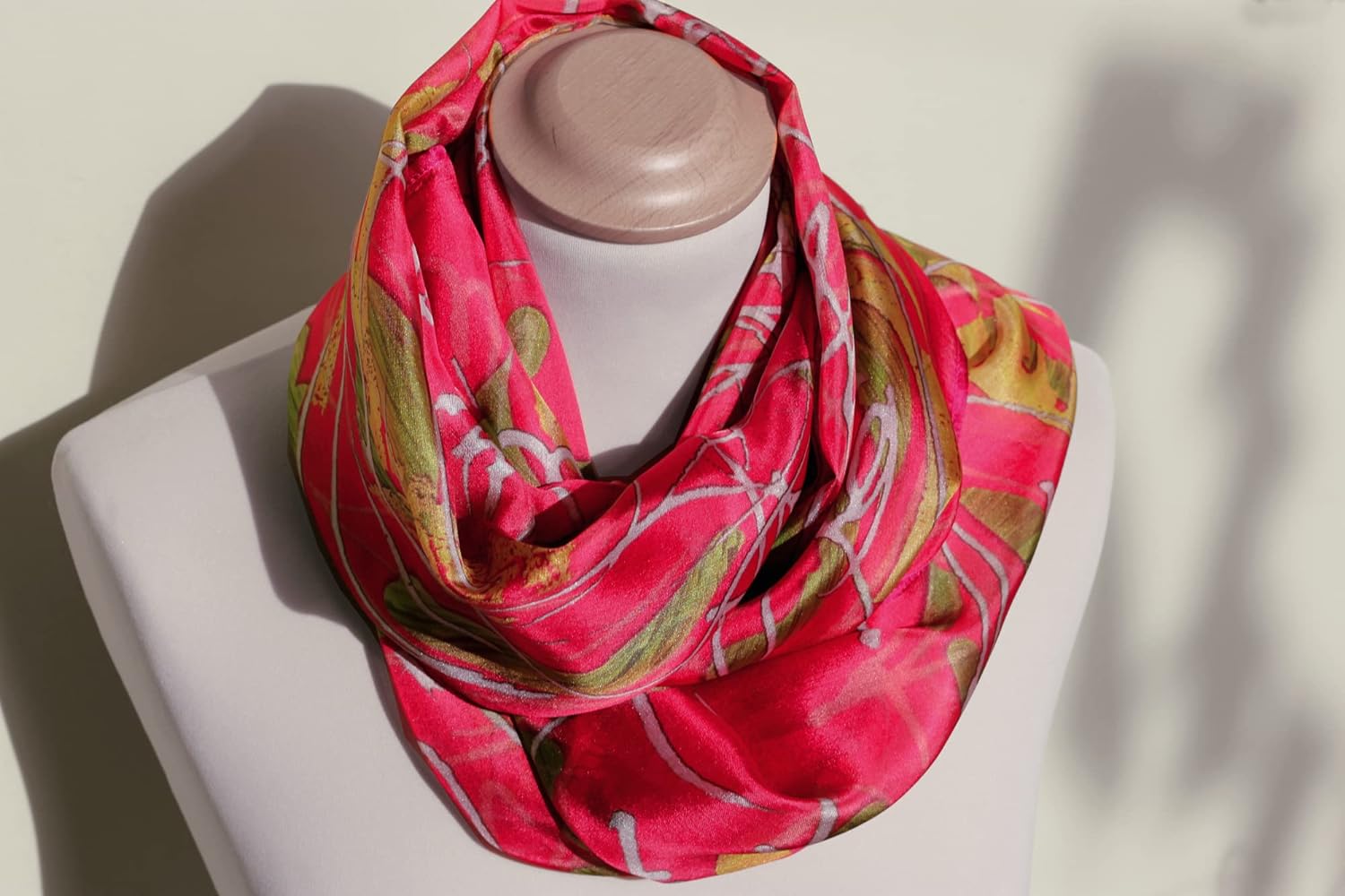 - Fuchsiafarbenen Hintergrund und gelblichen Linien darauf