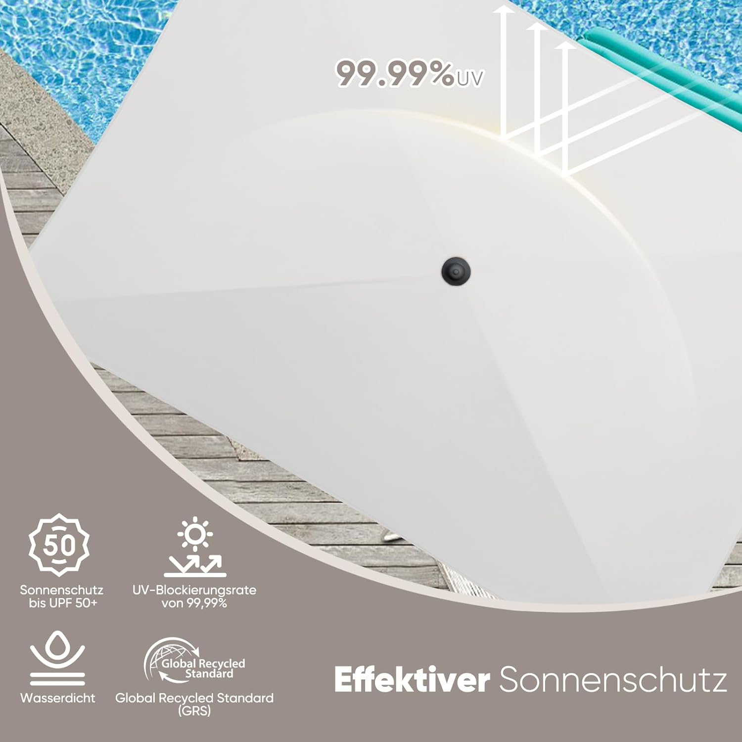 - Die Höhe unserer Gartenschirm lässt sich mit einem Drehknopf je nach Sonnenstand einstellen, ideal für den Einsatz im Garten, Terrasse, Balkon, Strand, Pool sind;