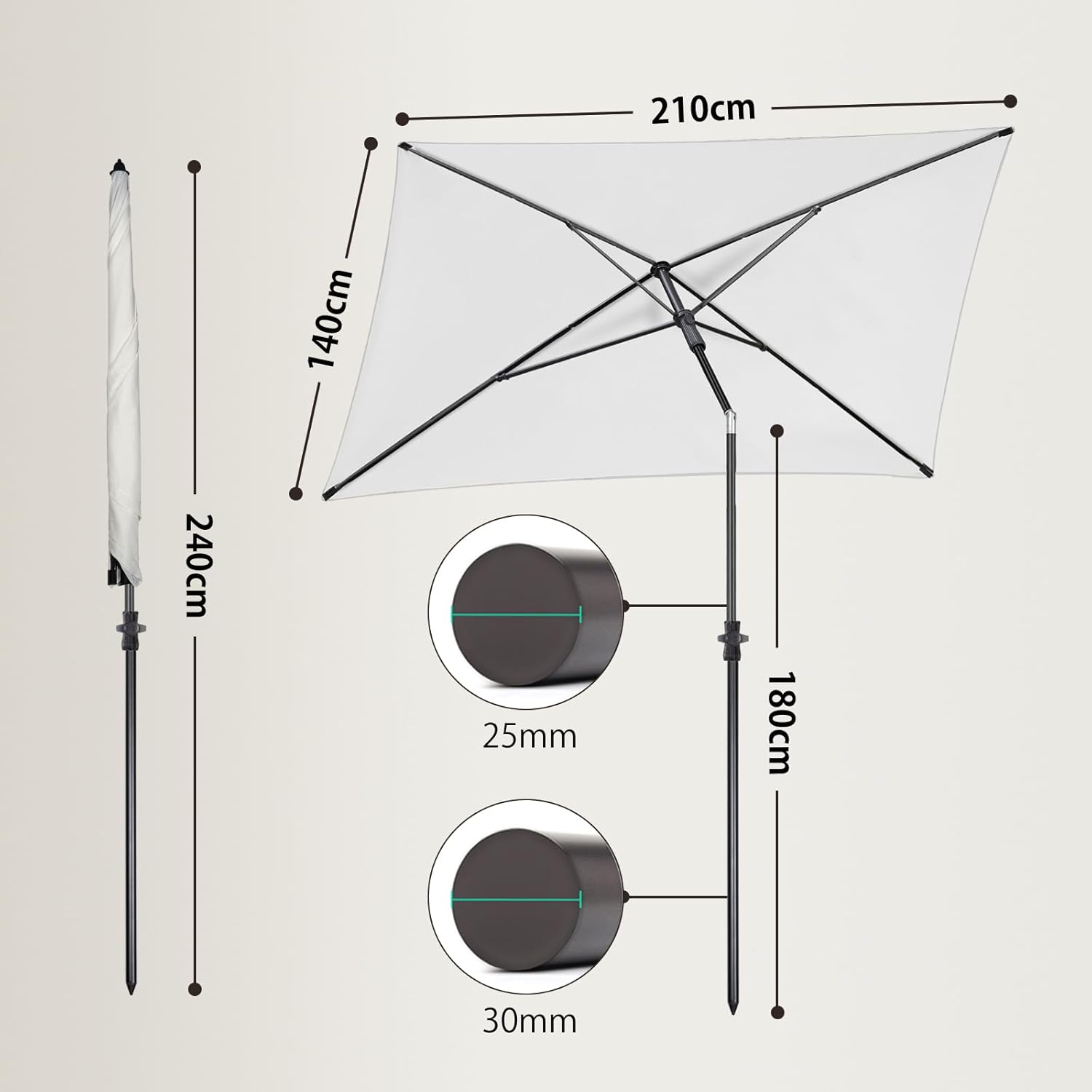 - Grösse: 210*140cm, Höhe: 240 cm, Durchmesser Stange: 30 mm. 100% Polyester: ca. 160g/㎡;