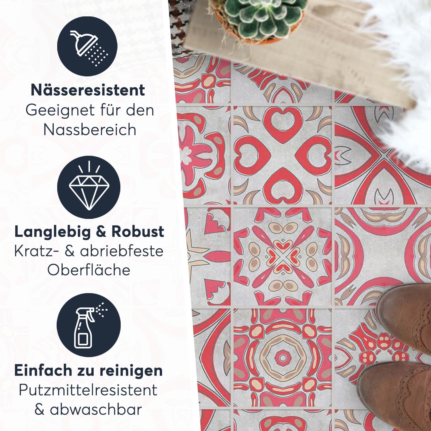 - HOCHWERTIGE VERARBEITUNG - Passgenauer Zuschnitt unserer Boden Klebefliesen - hochwertige Druckverfahren und beste Materialien zeichnen unsere Boden Fliesensticker aus.