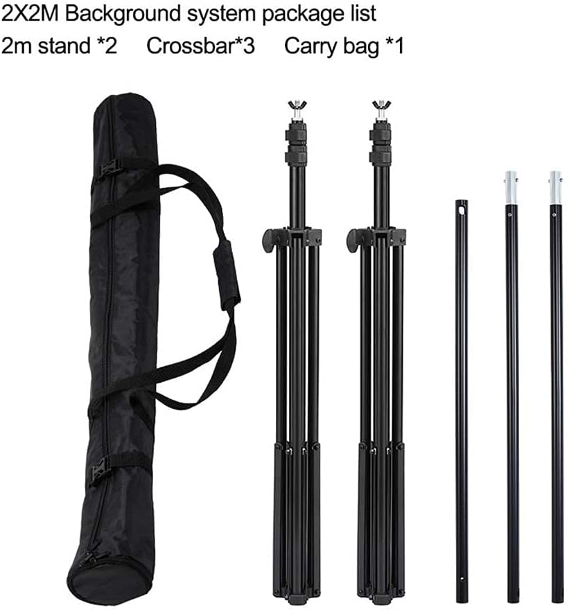 - Es wird auch mit einer Tragetasche geliefert, in der Sie Hintergrund-Support-Kits und Schiesszubehör aufbewahren können, sodass Sie bequem Geschäftsreisen, Aussenaufnahmen, Partys usw. unternehmen können.