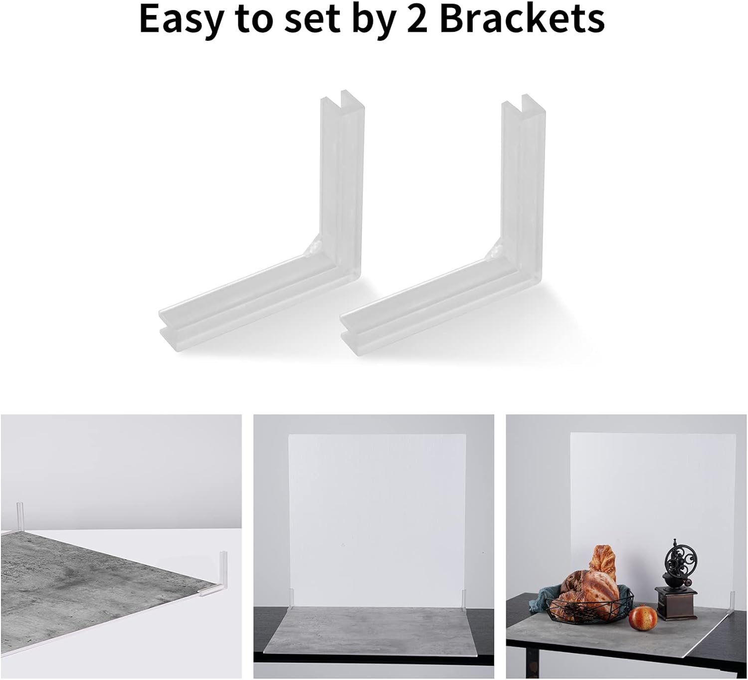 - Paket: 2 Stück 60x60cm Hintergrund Boards + 2 Halterungen. Kommen Sie mit flachem Paket, nicht rollen, nicht falten, um sich Sorgen zu machen.