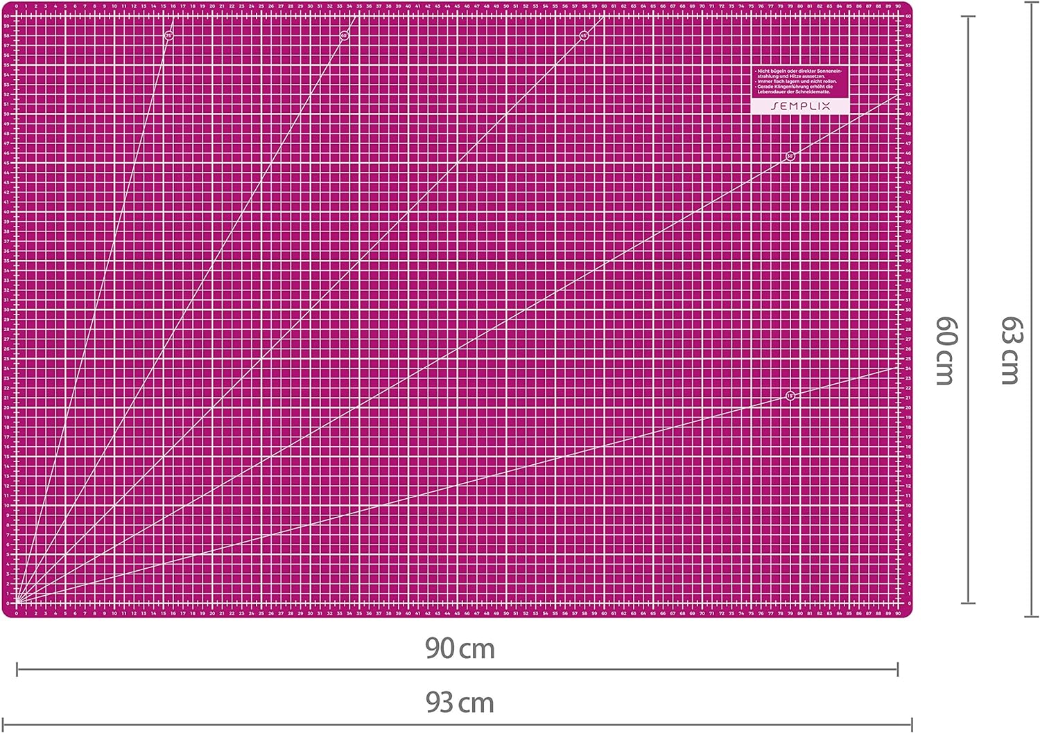 • ZUSÄTZLICHE RANDZUGABE sorgt dafür, dass die volle Skala von 90x60 cm / 35x24 Inch komplett genutzt werden kann. Die über das Raster hinaus reichenden, umlaufenden Markierungen, ermöglichen das passgenaue Anlegen und Schneiden direkt am Rand