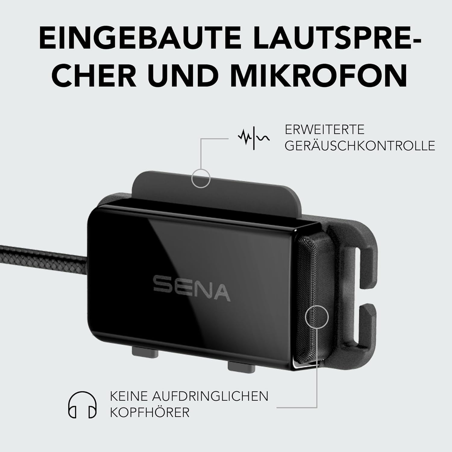 - Bluetooth-Gegensprechanlage, die an den meisten Fahrrad- und Multisporthelmen durch Einklipsen an den Helmriemen befestigt werden kann