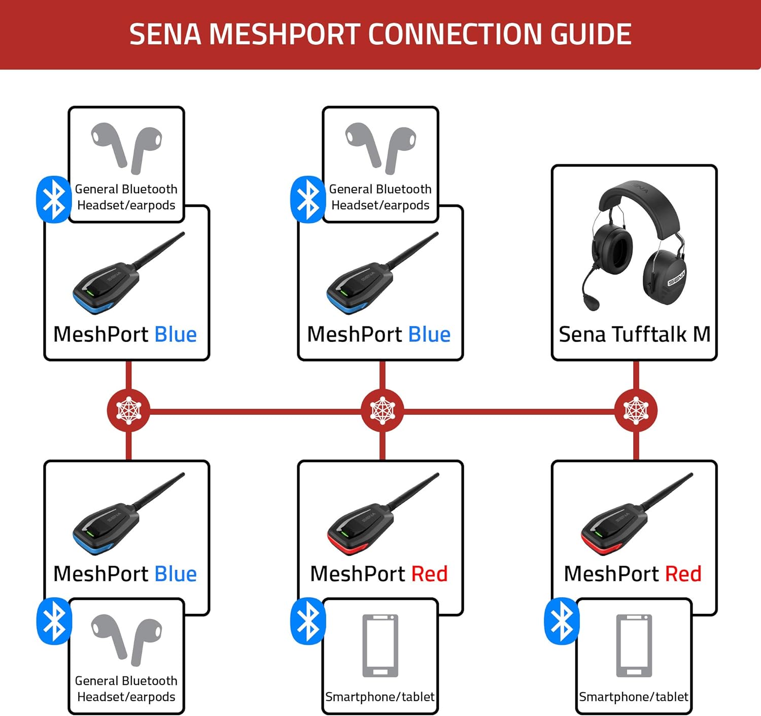 - Mesh 2.0 Headset Adapter - Ermöglicht Nicht-Sena-Geräten die Verbindung zum Sena Mesh-Netzwerk