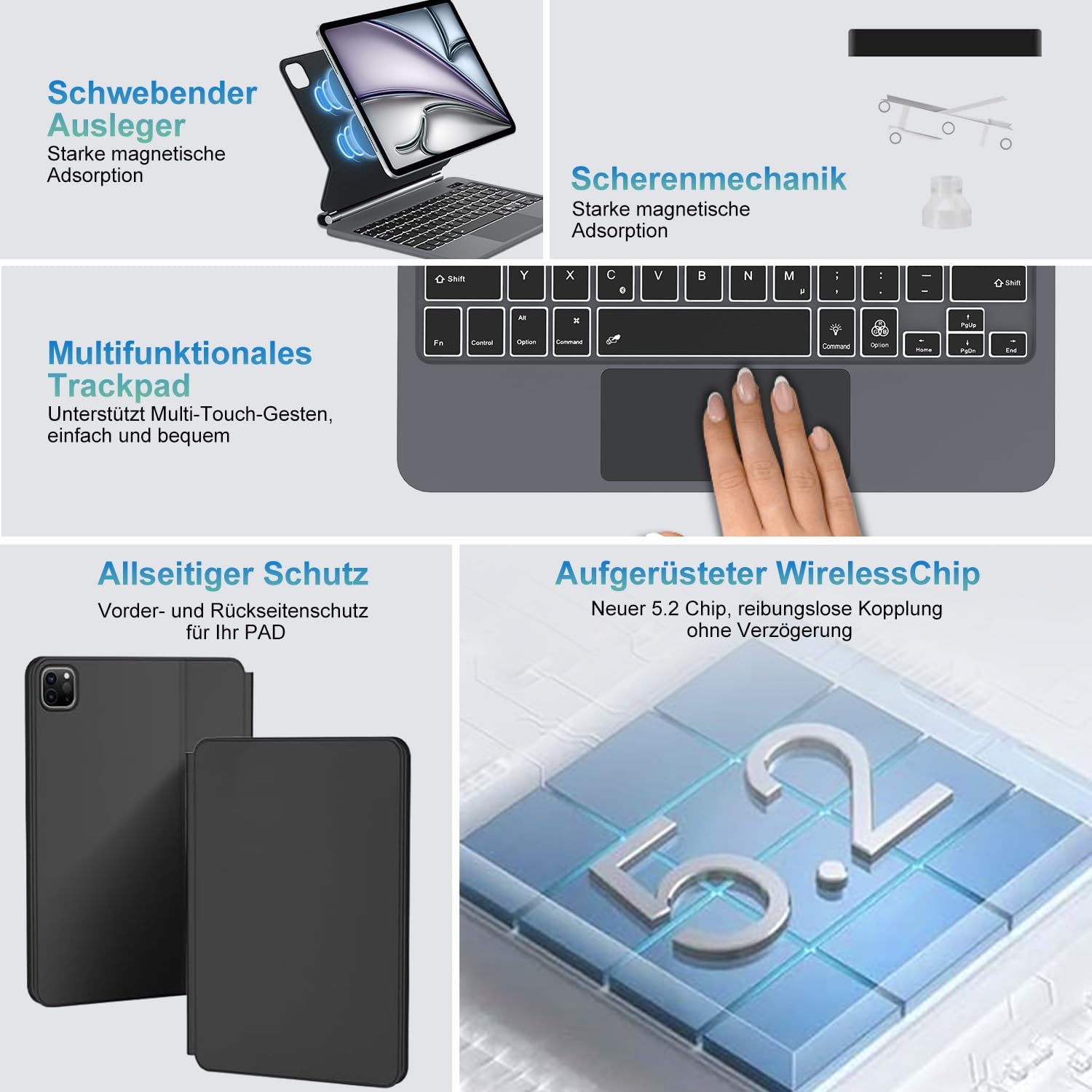 - Kompatibilität - Kompatibel mit neuem iPad Air 11" M3 2025/M2 2024, iPad Pro 11 Zoll 4th Gen 2022 (A2435, A2761, A2762) / iPad Air 10. 9 5th 2022 (A2588, A2589, A2591 ) / iPad Pro 11 Zoll 2021 3rd Generation (A2377, A2459, A2301. A2460) / iPad Air 4th