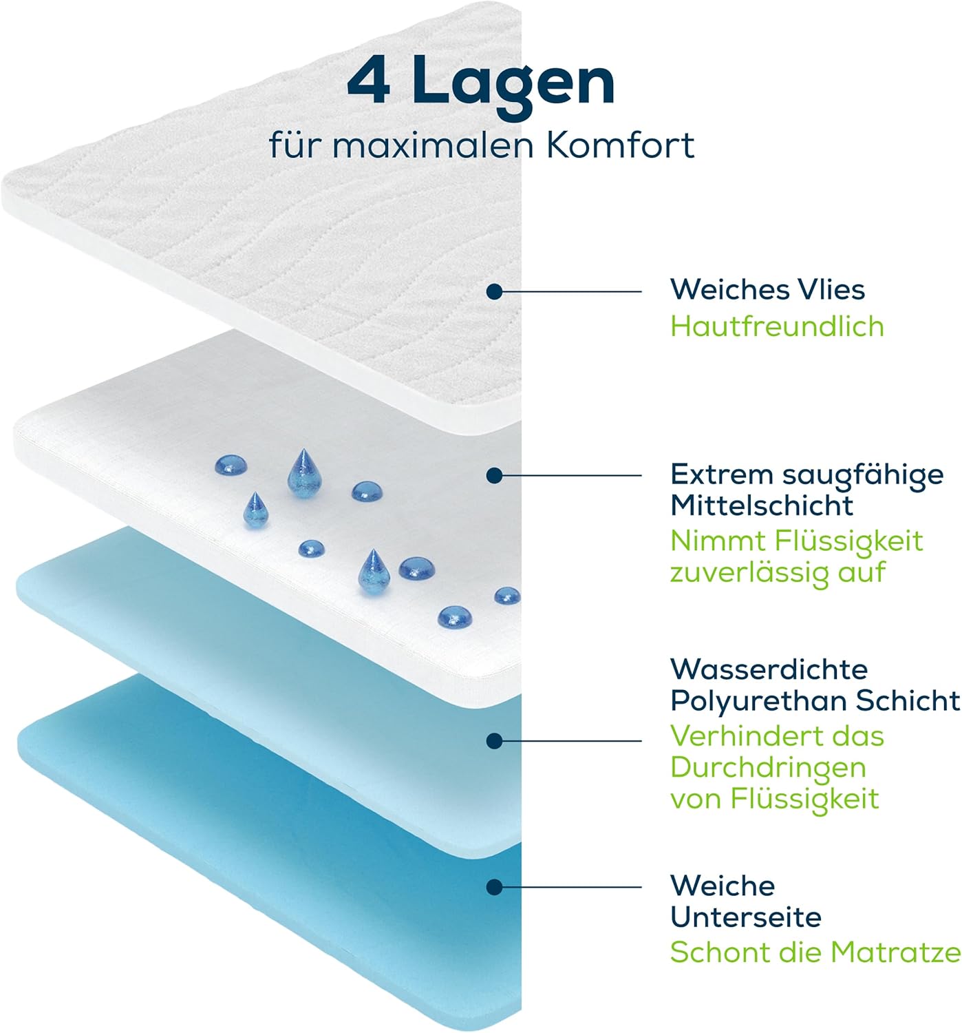 - Nässe Schutz. Atmungsaktive wasserfeste Matratzenschoner mit Vierschicht Vlies. Extrem saugfähig