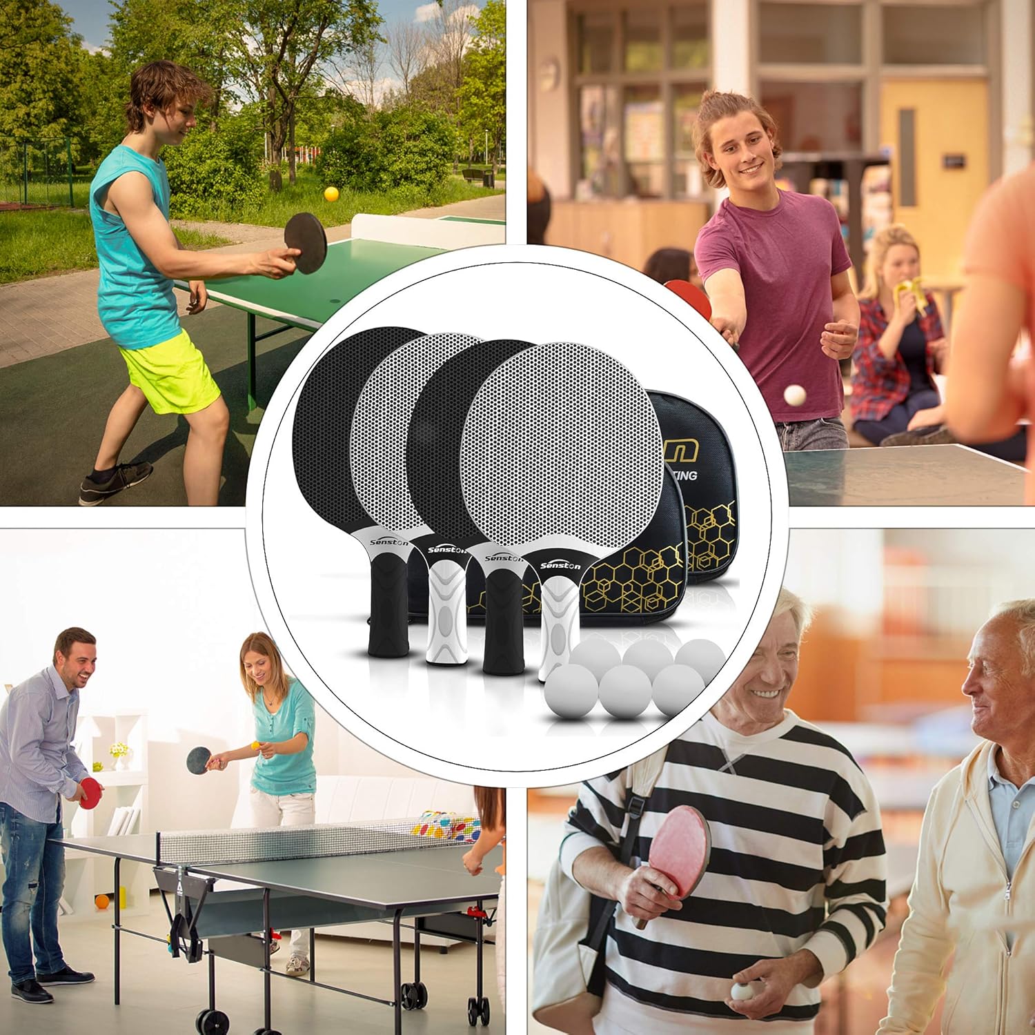 - PAKET INKLUSIVE: 4 Tischtennisschläger, 6 Tischtennisbälle, 2 Aufbewahrungstaschen. Die Pakete können für die ganze Familie und Ihre Freunde zum Spielen bereitgestellt werden.
