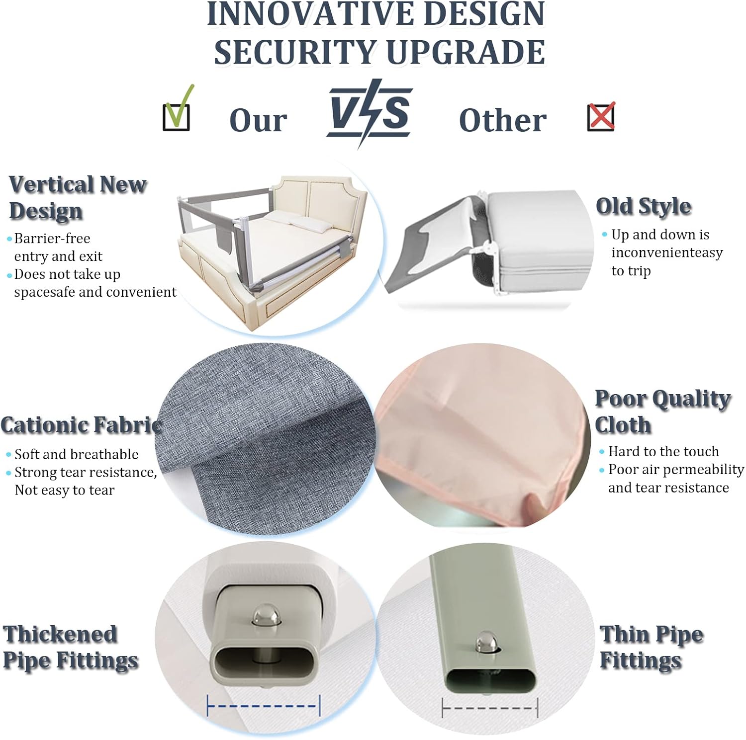 - 💕【Unabhängiger Vertical Lift】: Sentasi rausfallschutz bett ist völlig anders als der traditionelle faltbare bettschutz, der immer im kopfteil verstaut ist.Sentasi bettschutzgitter kann unabhängig vertikal angehoben werden und kann verwendet