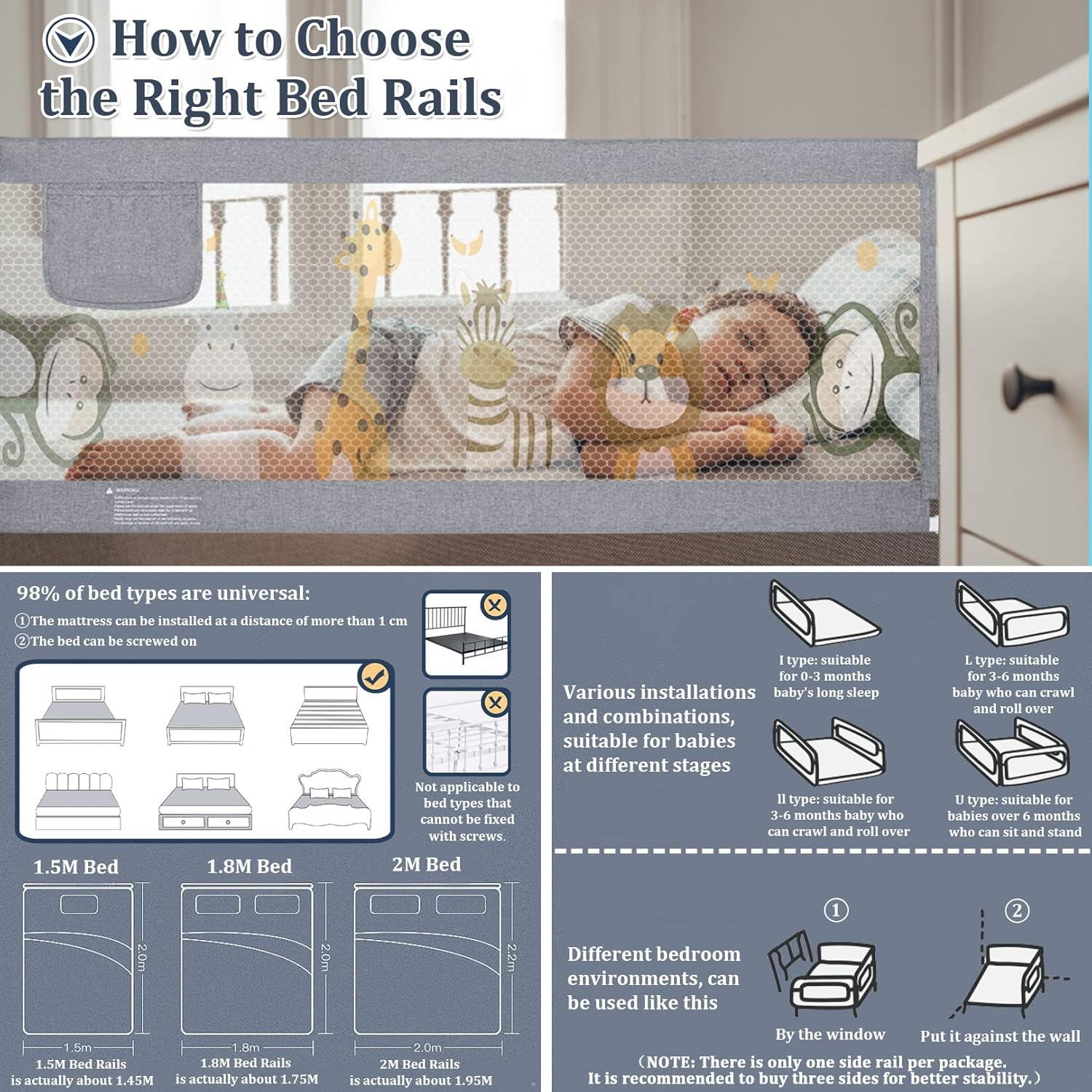 - 💕【Rausfallschutz Bett Designed for Safety】: 1. Hochelastisches und atmungsaktives mesh-gewebe verhindert stösse, und eltern können jede bewegung ihres babys jederzeit kontrollieren. 2. Anti-bumping-baumwolle und abgerundete ecken sind entworfen,