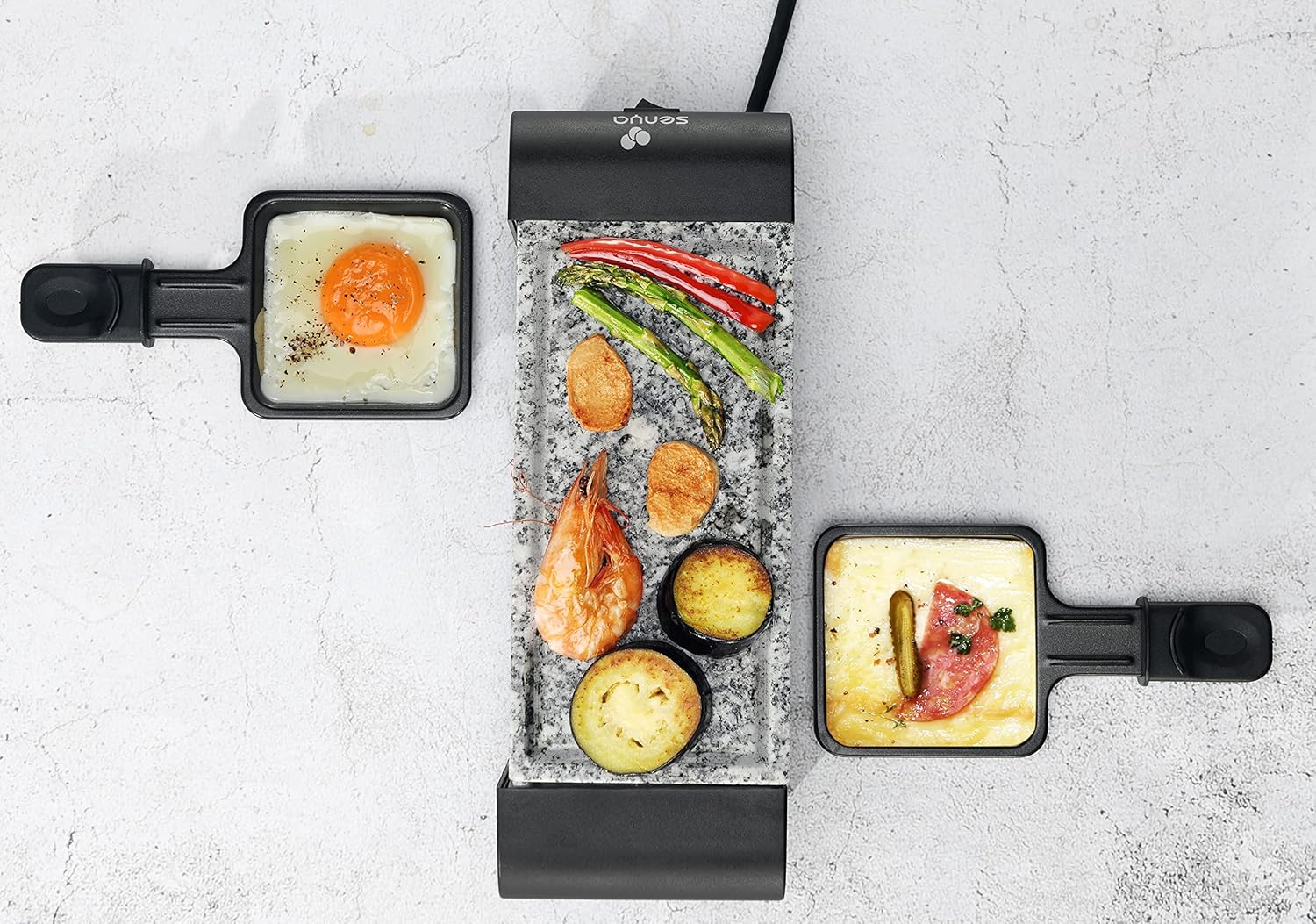 - RACLETTE 2 PERSONEN: Mit diesem Mini-Duo-Raclette können Sie Ihren Partner oder Ihren besten Freund einladen, um gemeinsam einen köstlichen Moment zu erleben.