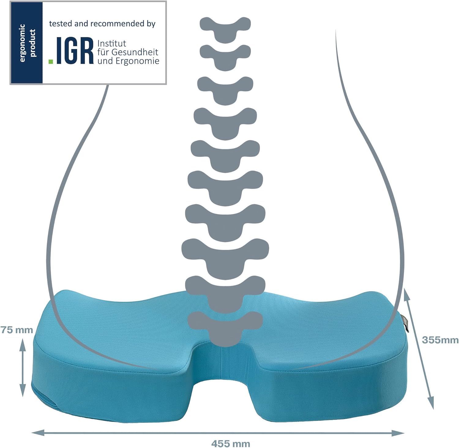 - Das Sitzkissen lässt sich zu Hause, im Büro oder im Auto verwenden; es verfügt über einen waschbaren Bezug und bleibt somit immer sauber und hygienisch