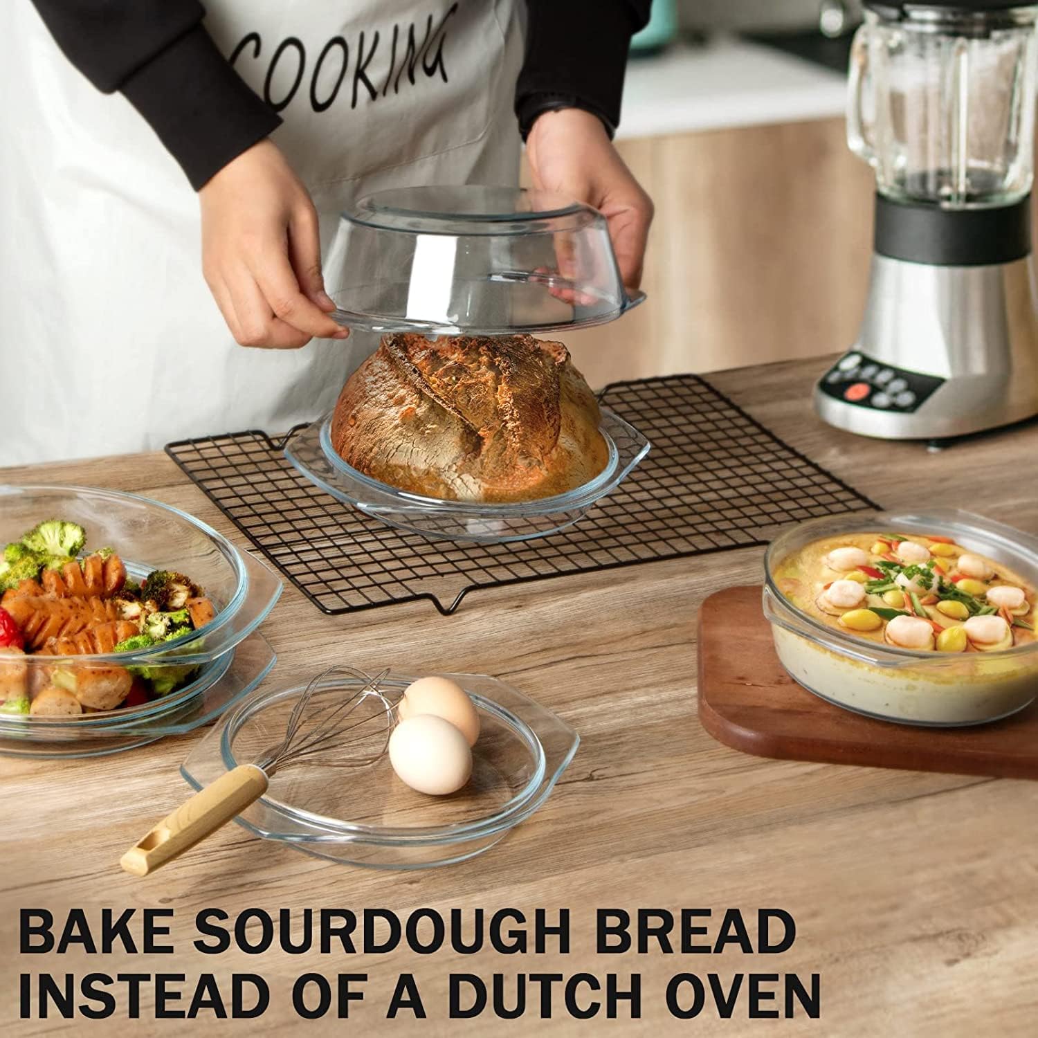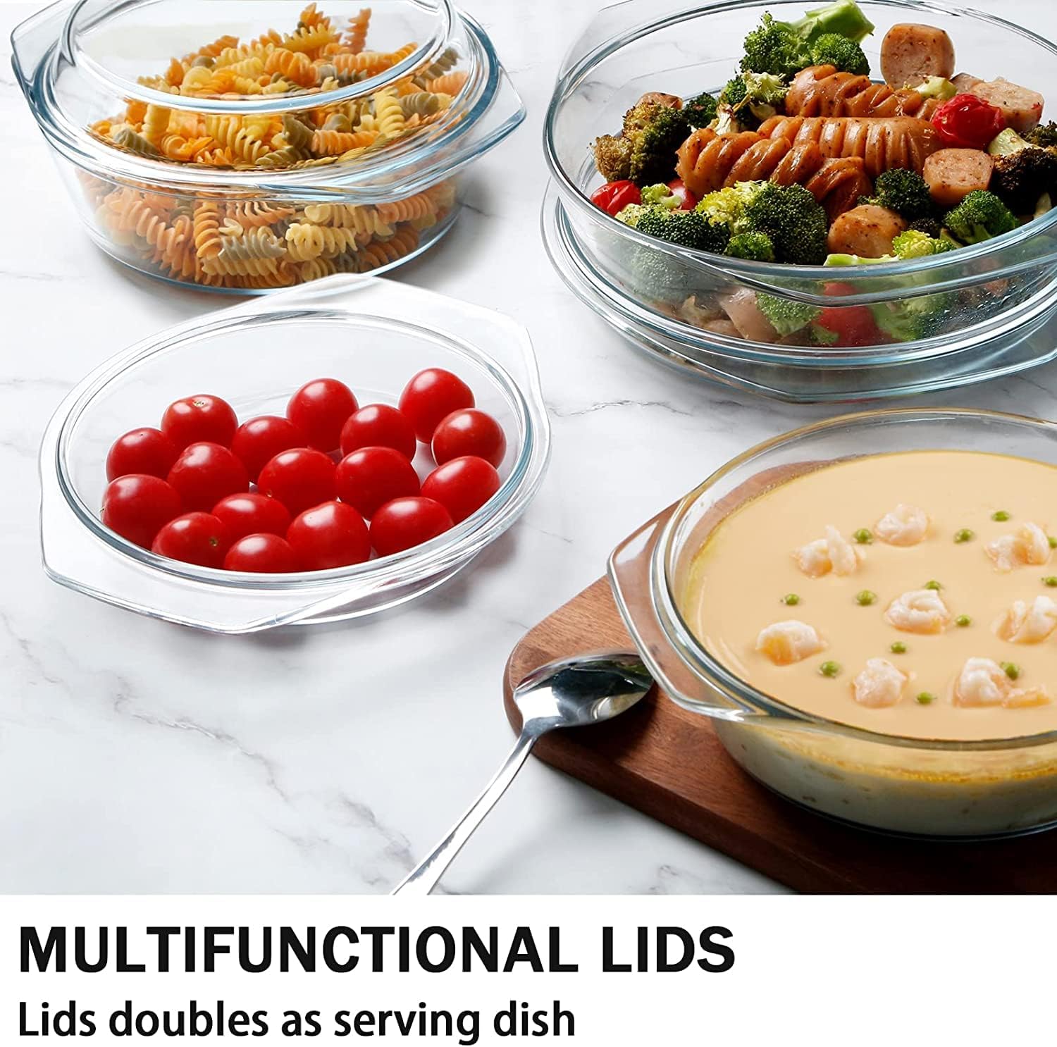 - 【Vielseitiger Deckel】 Mit Glasdeckel können Sie jeden aufstrebenden Auflauf herstellen, den Sie möchten, ohne sich um Verschüttungen zu sorgen. Drehen Sie den Deckel um. Sie können ihn als kleine Auflaufform oder Beilage verwenden