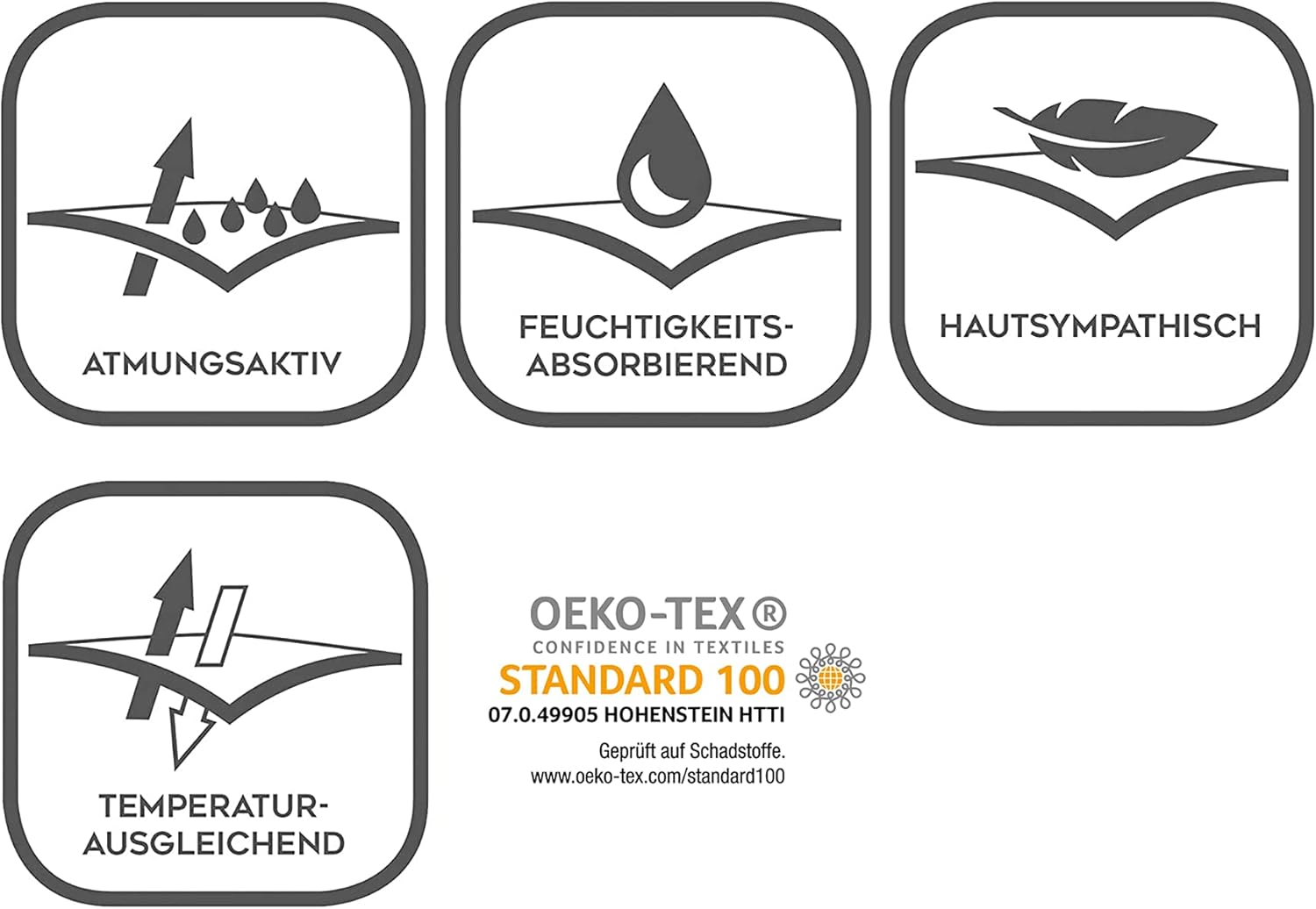 • Temperaturausgleichend und hautsympathisch durch hohe Luft- und Wasserdampfdurchlässigkeit, Kochfest bis 95 Grad – Perfekte Passform und Entfaltung des Antiallergen-Effekts nach der ersten Wäsche