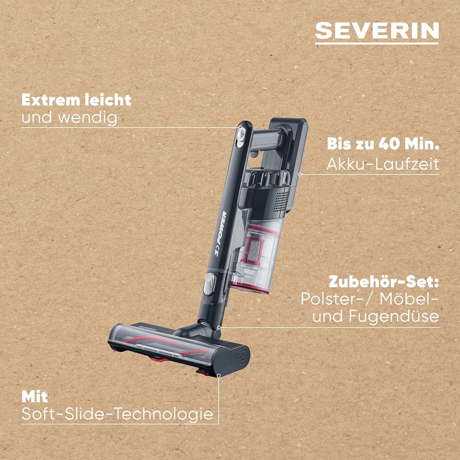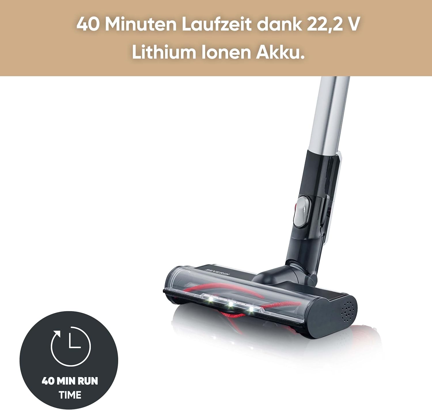SEVERIN 2-in-1 Stiel- und Handstaubsauger, Akku Staubsauger mit bis zu 40 Min. Laufzeit, kabelloser