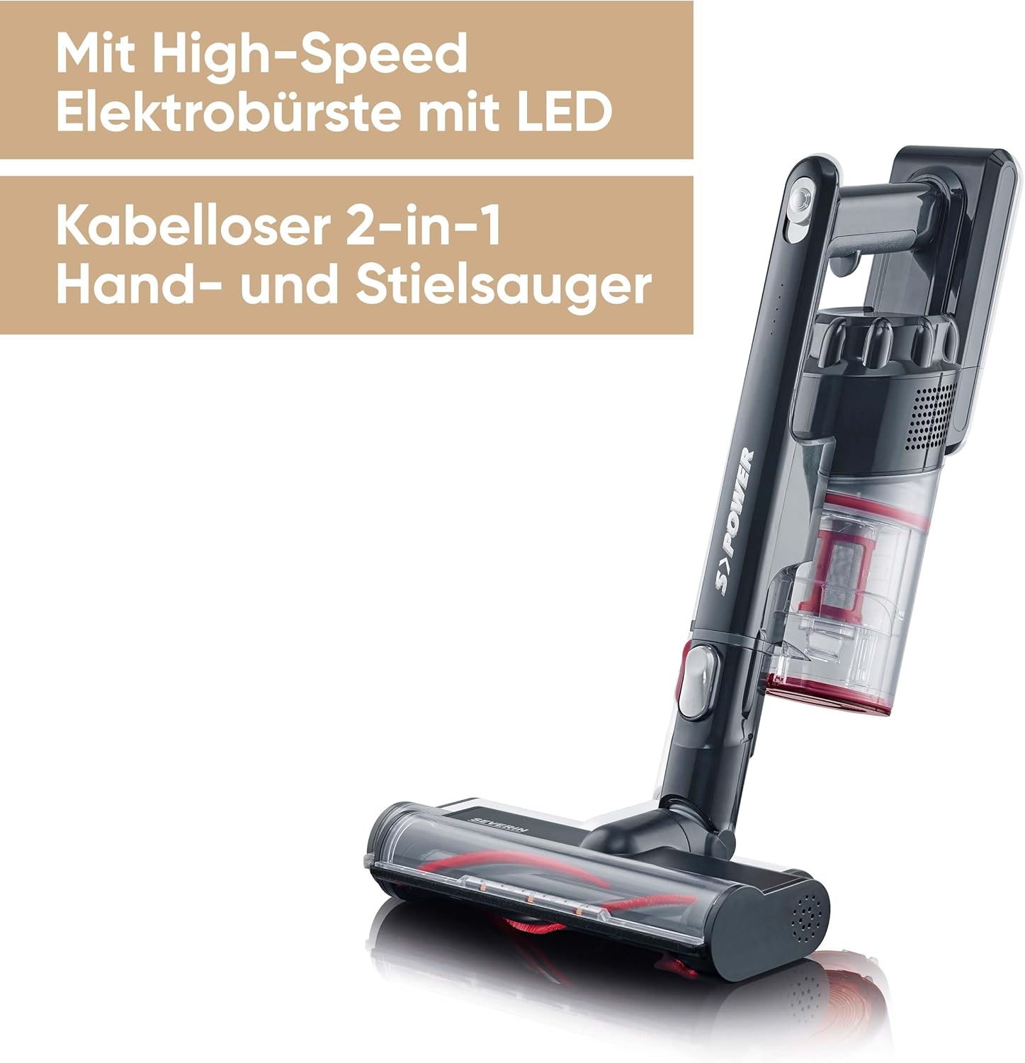 • Smartes Design – Die High-Speed Elektrobürste ist ideal für empfindliche Hartböden oder tief sitzenden Schmutz, der dank der LED-Beleuchtung am Akkusauger gut erkennbar ist.
