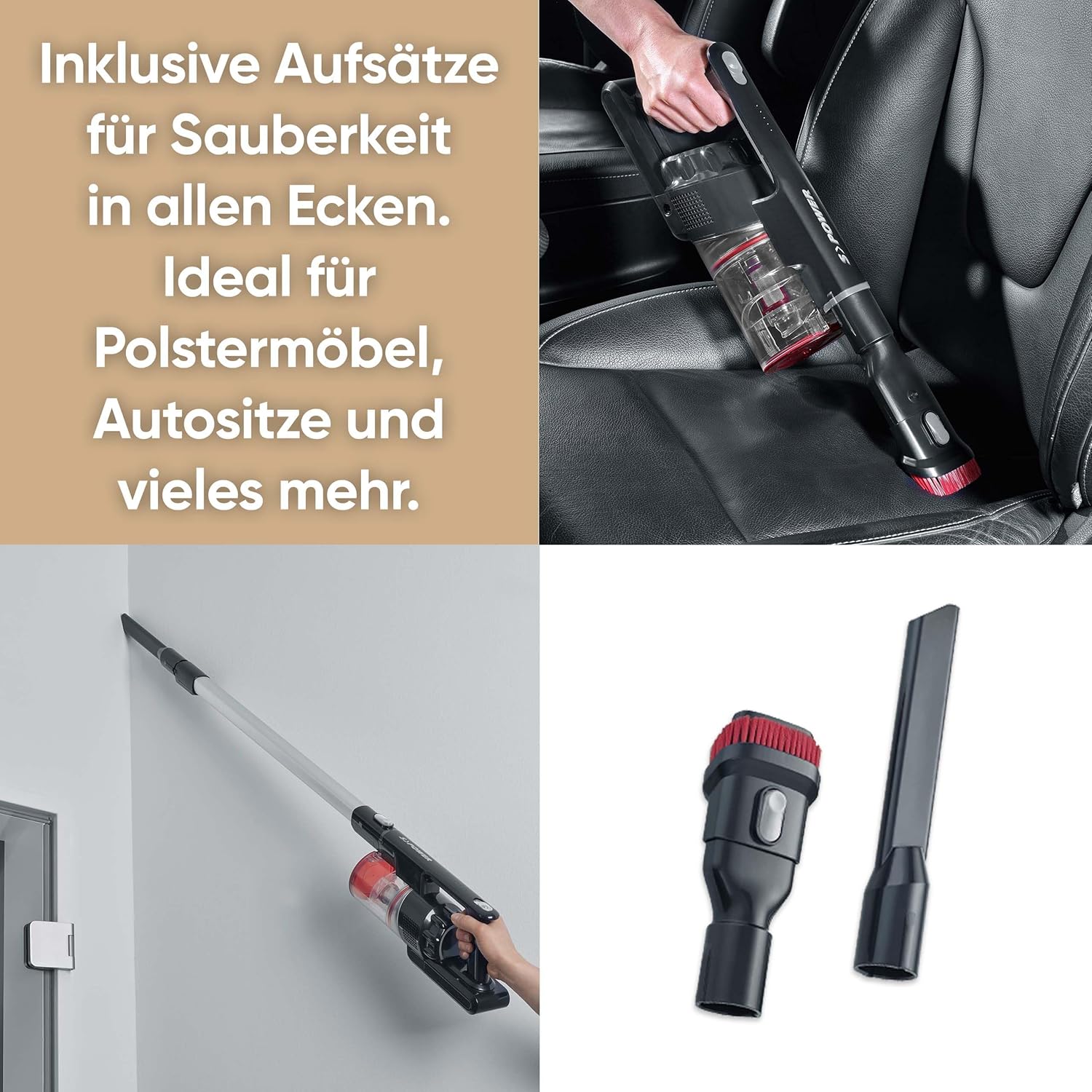 • 2-in-1 – Der Stielstaubsauger lässt sich spielend leicht in einen Handsauger umwandeln und ermöglicht mit langer Fugendüse, auch schwer erreichbare Ecken im Haushalt zu putzen.