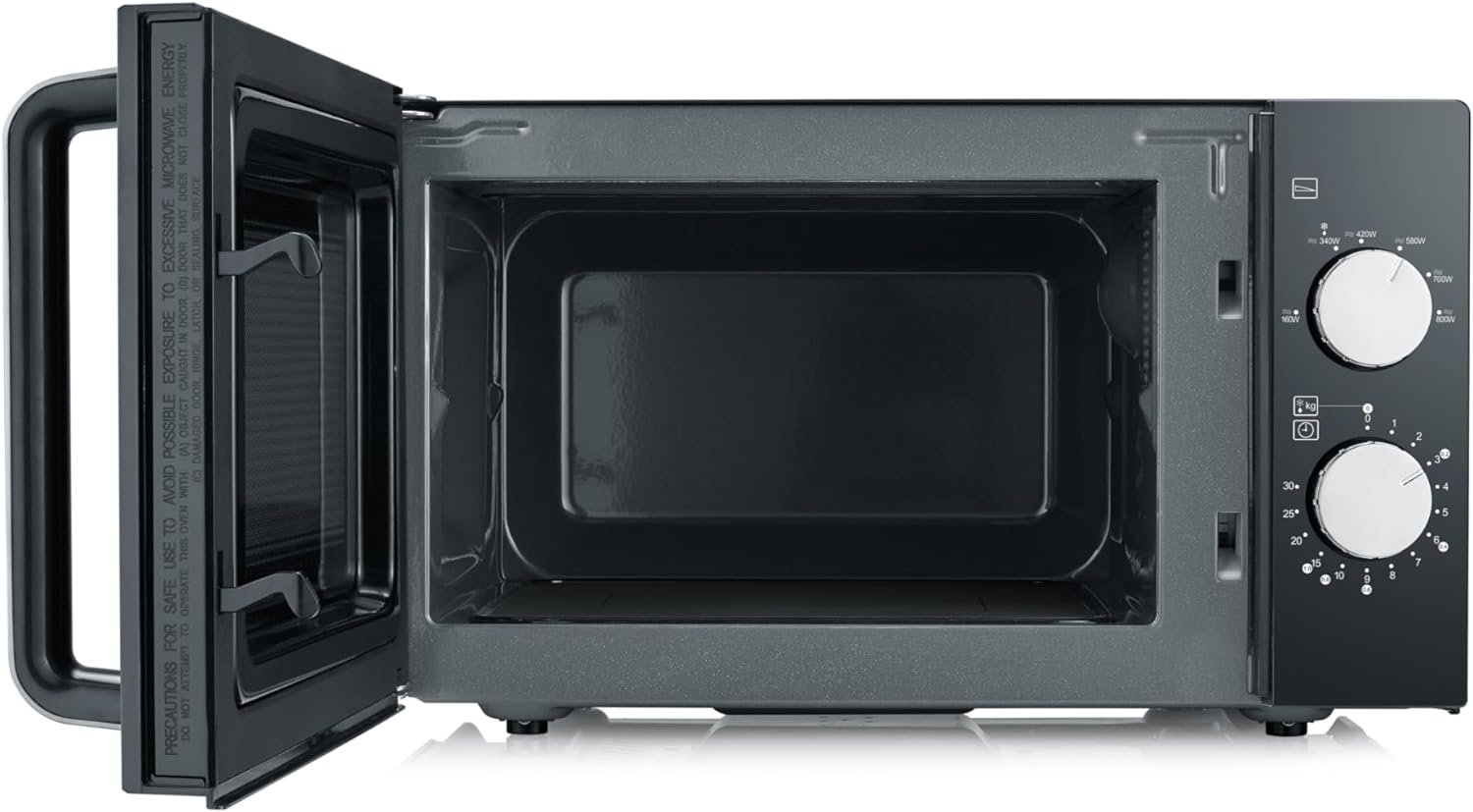 - Leichte Reinigung – Das Innere der kleinen Mikrowelle sowie der flache Keramikboden können einfach und unkompliziert mit einem Tuch ausgewischt werden.