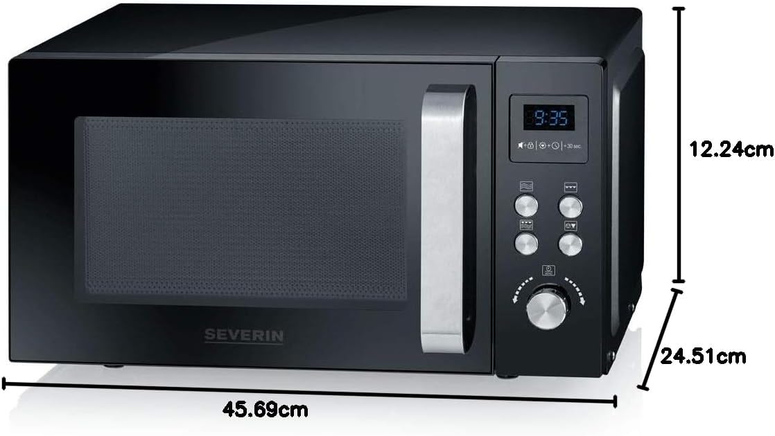 - Lieferumfang: 1 Severin Mikrowelle, Inkl. Drehteller und Grillroste, MW 7750, Material: Kunststoff, Masse (LxBxH): 45,2x40x26,5 cm, Gewicht: 13 kg, Mikrowelle: 800 W, Grill: 1.000 W, Farbe: schwarz