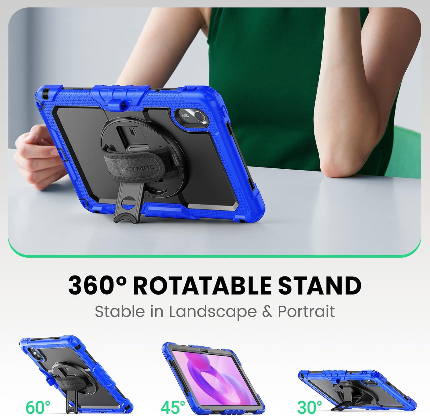 - 【360 ° drehbarer Ständer und Handschlaufe】: 360 ° drehbarer Ständer bietet mehrere Winkel für bequemes Tippen und Filmen. Die verstellbare Handschlaufe unterstützt das Halten oder Benutzen Ihres Geräts in alle Richtungen. Die Elastizität der