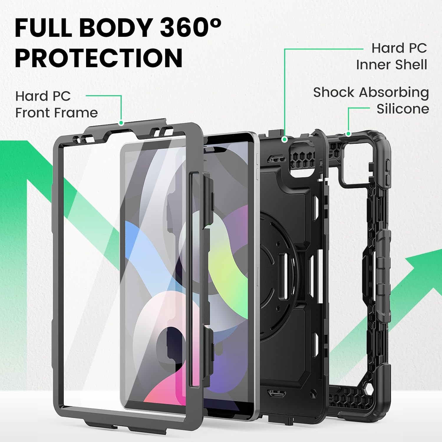 - ✔ 【Ganzkörperschutz mit Displayschutzfolie】 : Diese iPad Air 4 / Air 5 Hülle besteht aus weichem, flexiblem Silikon und harten PC-Auskleidungen sowie einer integrierten Displayschutzfolie und bietet Ihrem iPad Ganzkörperschutz gegen