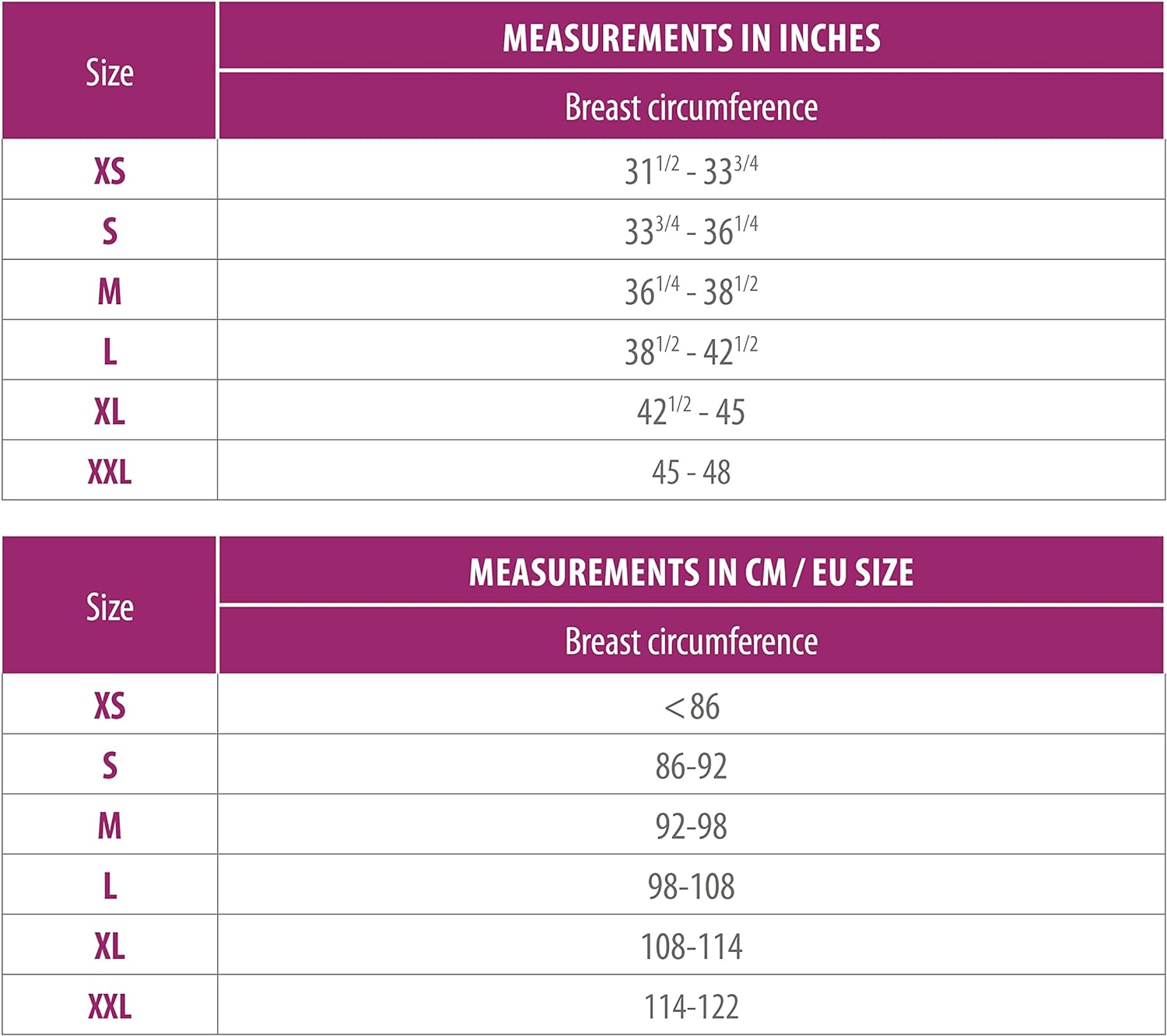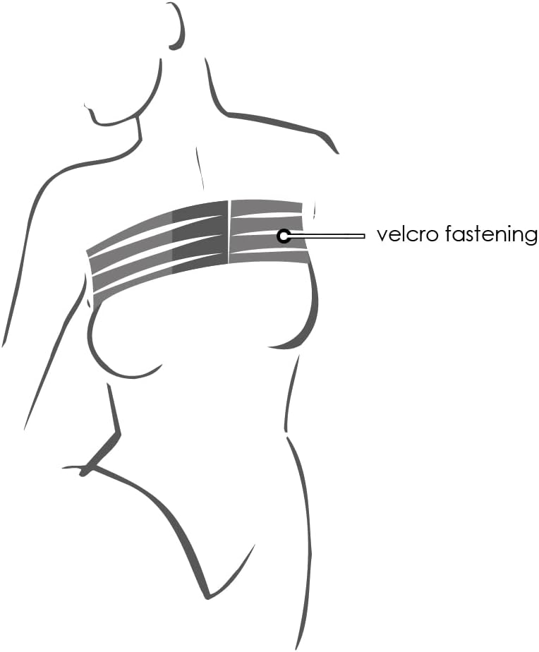 - Die Bandage kann in Verbindung mit einem Kompressions-BH aus der LIPOELASTIC Serie verwendet werden und ist separat erhältlich. Es sollte über die Brust gelegt werden, um eine korrekte und kontinuierliche Kompression zu gewährleisten und nur verwendet