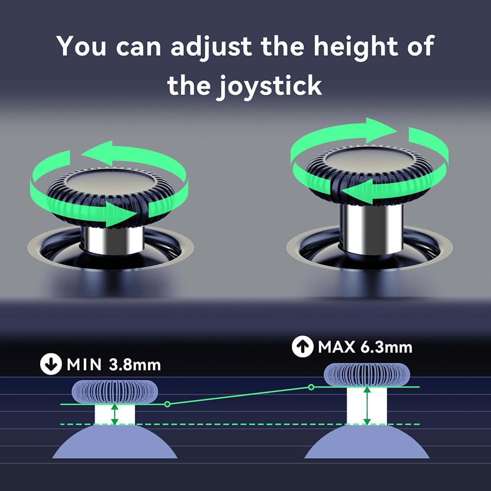 • 🎮【Einstellbare Joystick-Höhe】: Sie können die Höhe des Joysticks anpassen, indem Sie den Joystick des Handy Controller drehen, was die Ermüdung der Finger bis zu einem gewissen Grad lindern und Ihnen ein gutes Spielerlebnis bieten kann.