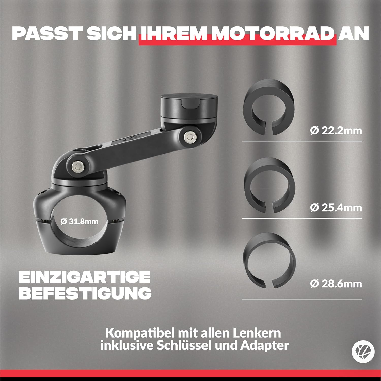 - Runde Lenker: Passt dank der drei Silikonscheiben an alle Lenker mit einem Durchmesser von 22 bis 32 mm. Die Shapeheart Lenkerschraubhalterung ist kompatibel mit Motorrädern, Rollern, Fahrrädern, Scootern und vielen anderen!