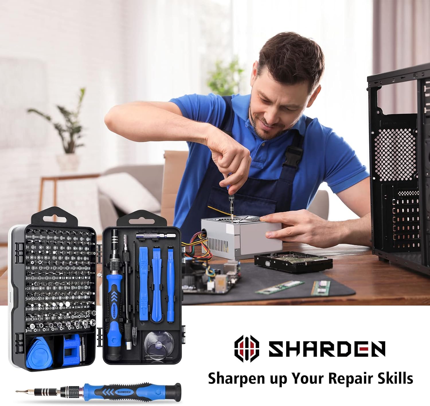- Multifunktionaler Werkzeugsatz: Der SHARDEN professionelle mini schraubenzieher set enthält 101 Bits mit 4 mm Durchmesser (Torx, Phillips, Geschlitzt, Dreikant, Sechskant usw.) sowie 21 weitere Gadgets, darunter harte und weiche Verlängerungen,